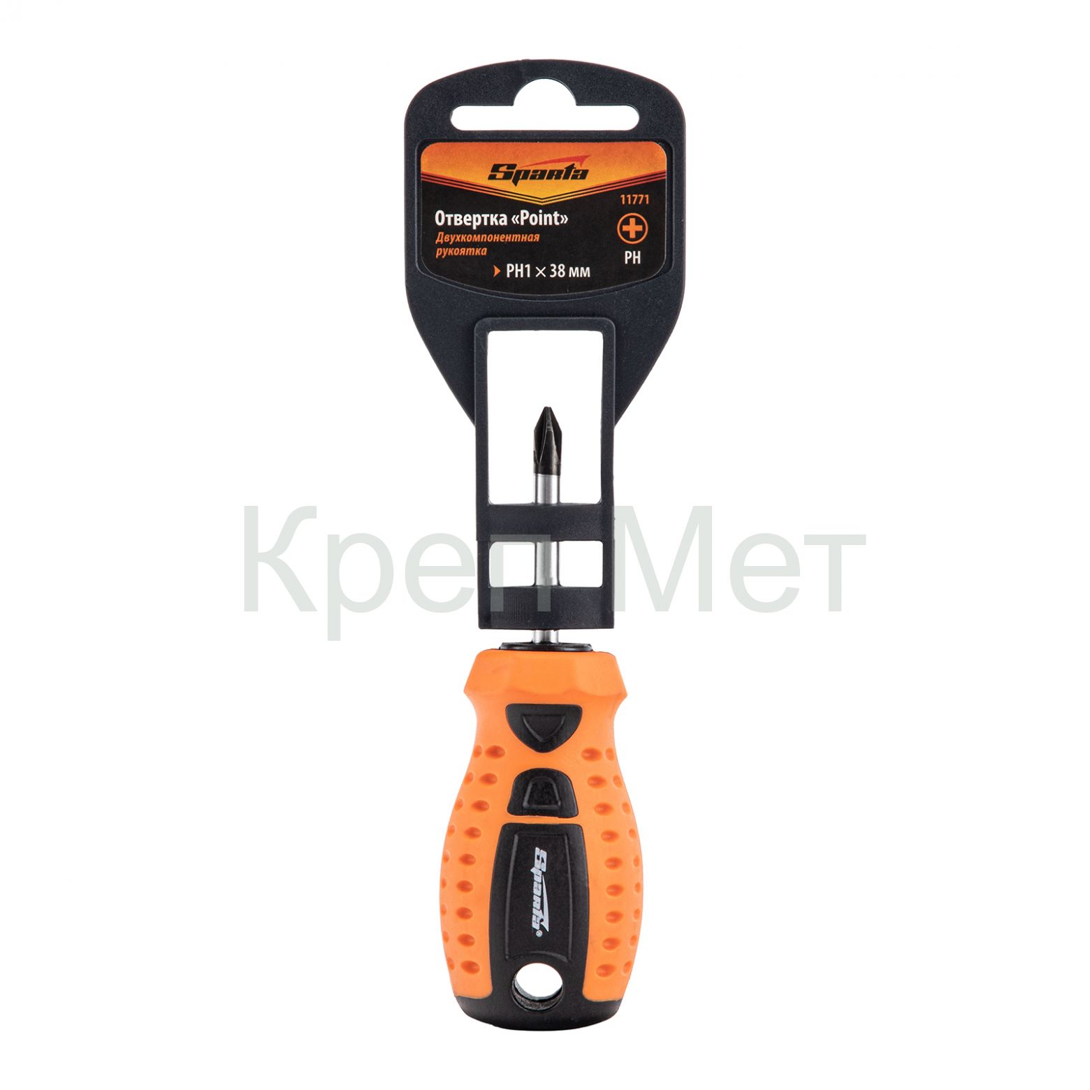 Отвертка "Point", PH1 х 38 мм, CrV, двухкомпонентная рукоятка Sparta