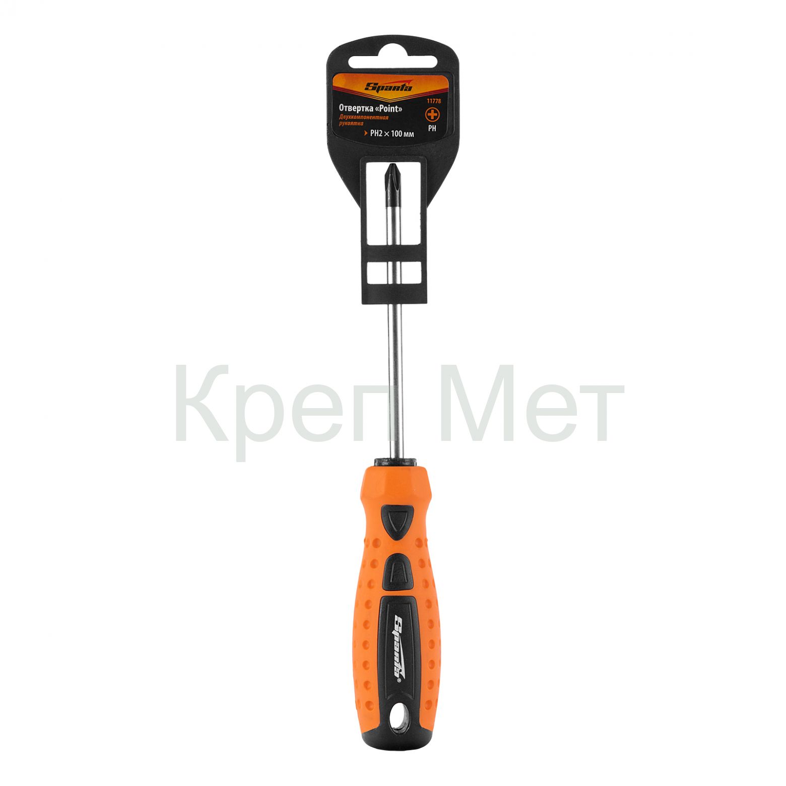 Отвертка "Point", PH2 х 100 мм, CrV, двухкомпонентная рукоятка Sparta
