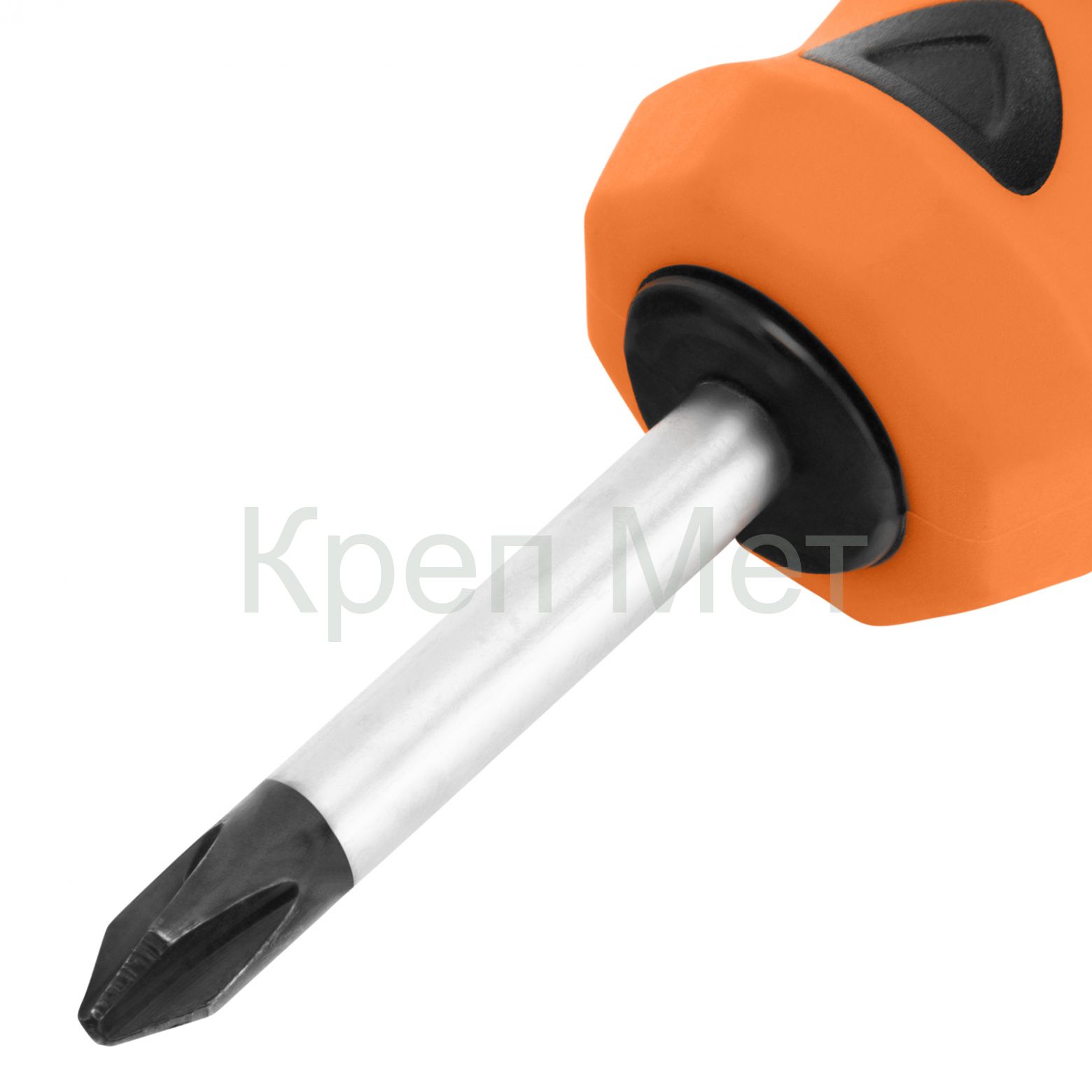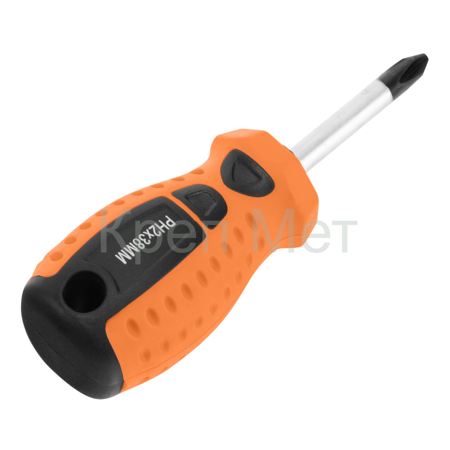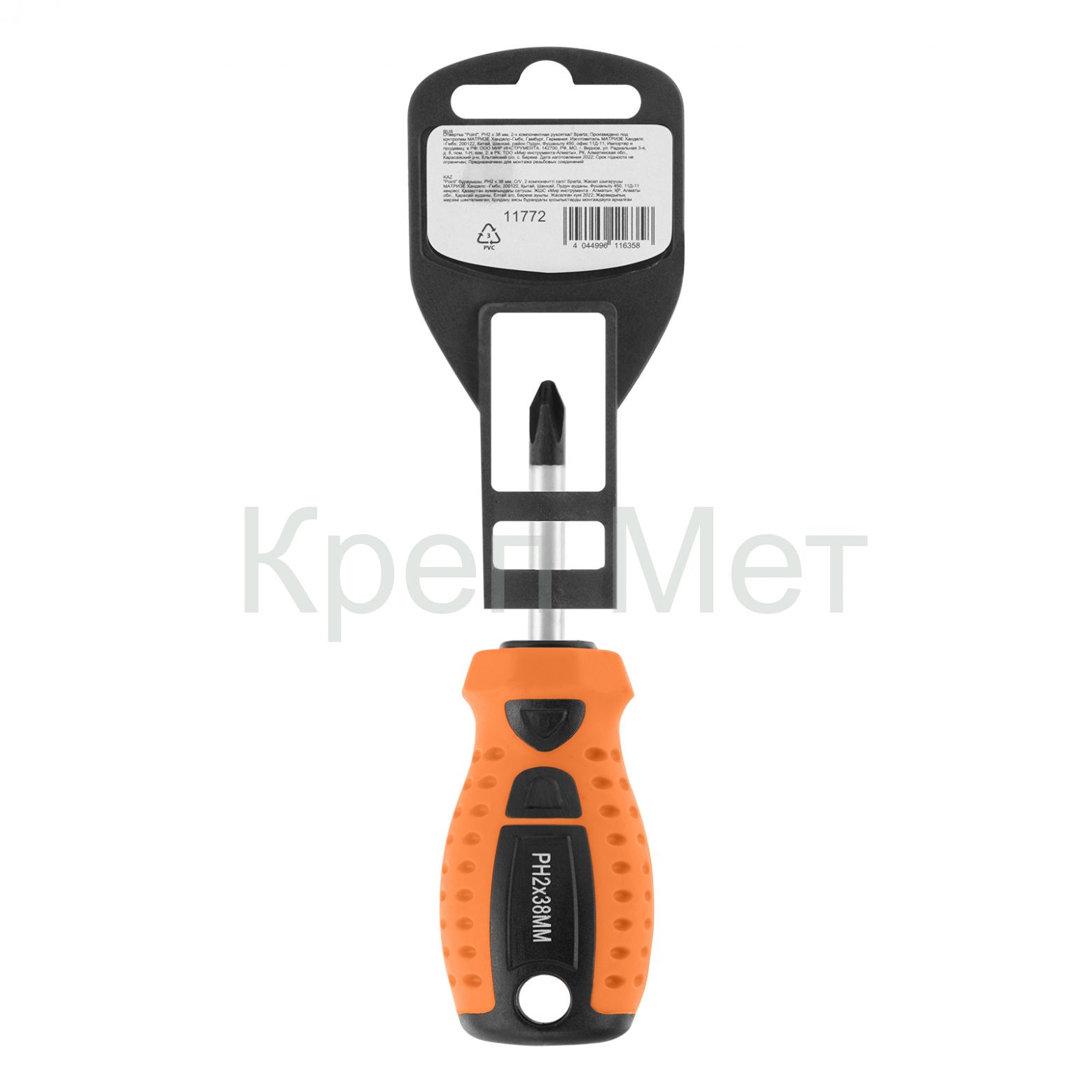 Отвертка Sparta «Point» 11772, из стали CrV, с 2-х компонентной рукояткой, подходит для монтажа/демонтажа крестового крепежа PH2. Она поможет мастерам провести мелкие бытовые работы в доме или автомастерской. Отвертка оснащена укороченным стержнем 38 мм для удобства работы в труднодоступных местах.
