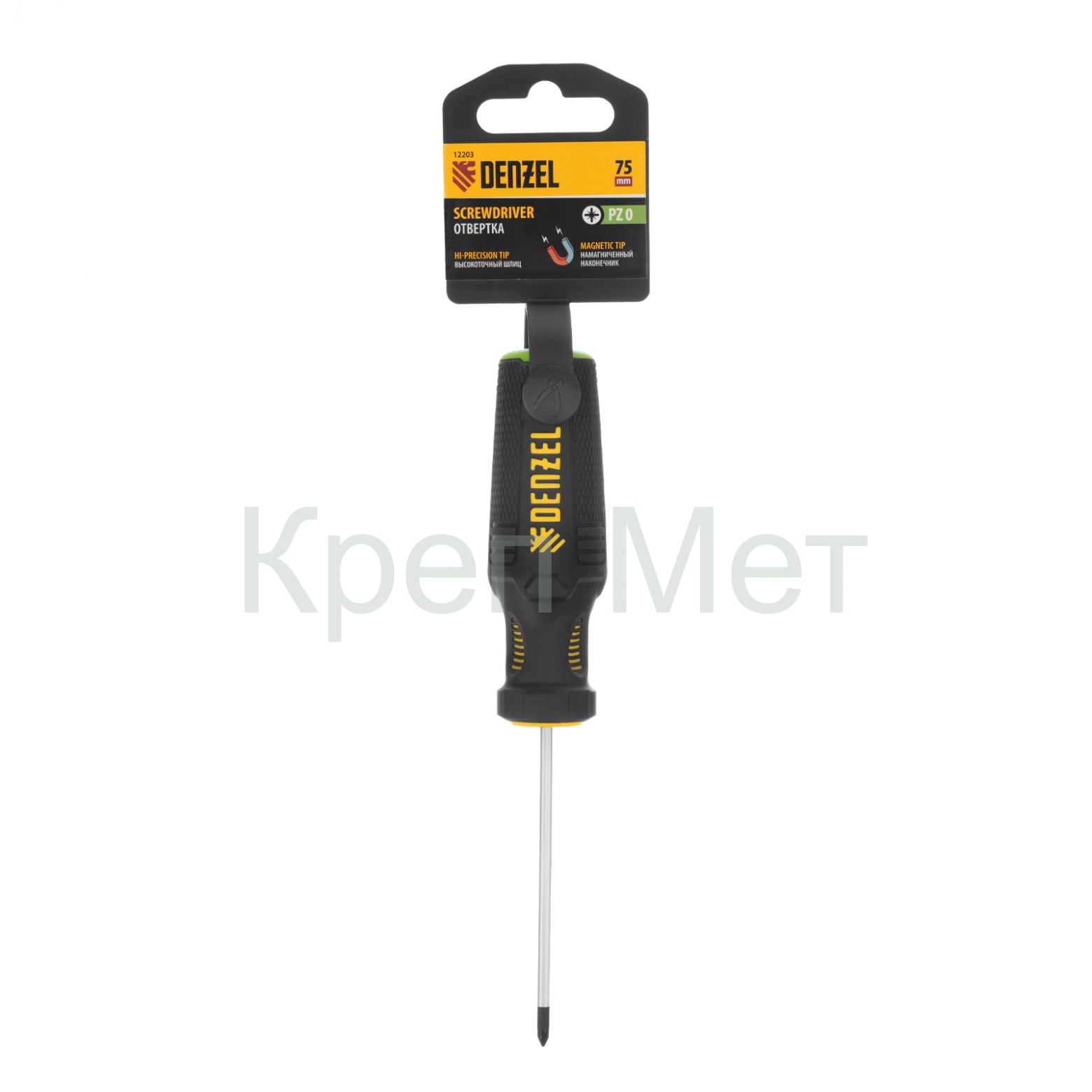 - Отвертка PZ0x75 мм, CrV, трехкомпонентная рукоятка Denzel