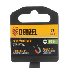 Отвертка PZ0x75 мм, CrV, трехкомпонентная рукоятка Denzel