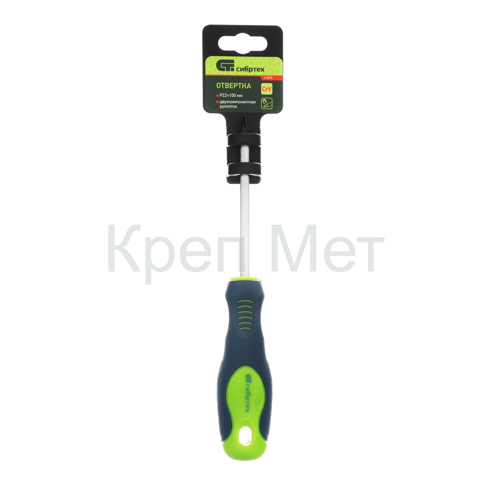 - Отвертка, PZ2 х 100 мм, CrV, двухкомпонентная рукоятка Сибртех