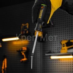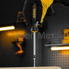 Отвертка Denzel 122077 с трехкомпонентной рукояткой, со стержнем из стали S2, длиной 100 мм, имеет шлиц PZ2 и предназначена для монтажных и демонтажных работ с резьбовыми соединениями типа Pozidriv. Благодаря намагниченному высокоточному шлицу отвертку с крепежом можно направлять одной рукой, удерживая другой закрепляемую деталь. Инструмент подходит для профессионального использования.