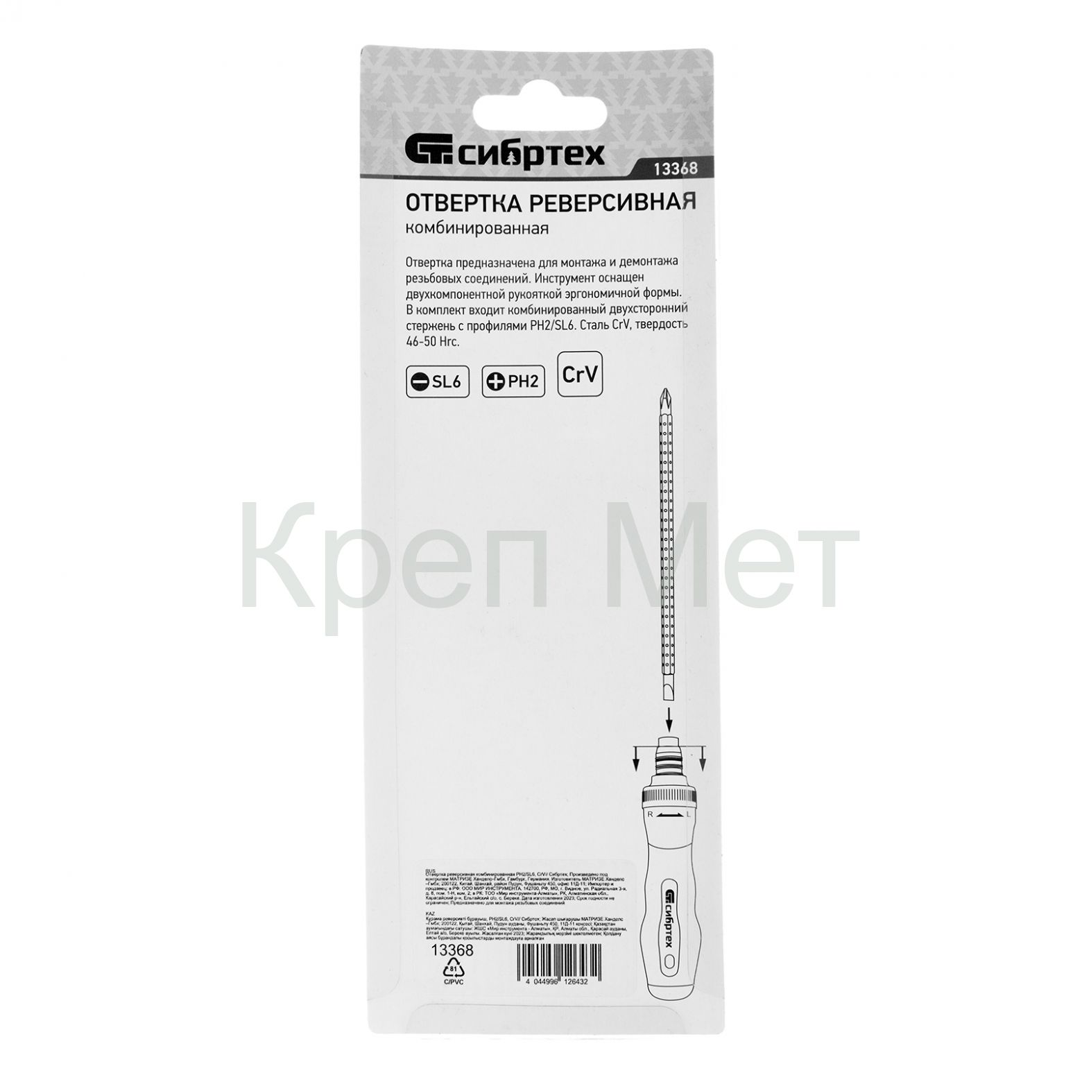 Отвертка реверсивная комбинированная PH2/SL6, CrV Сибртех