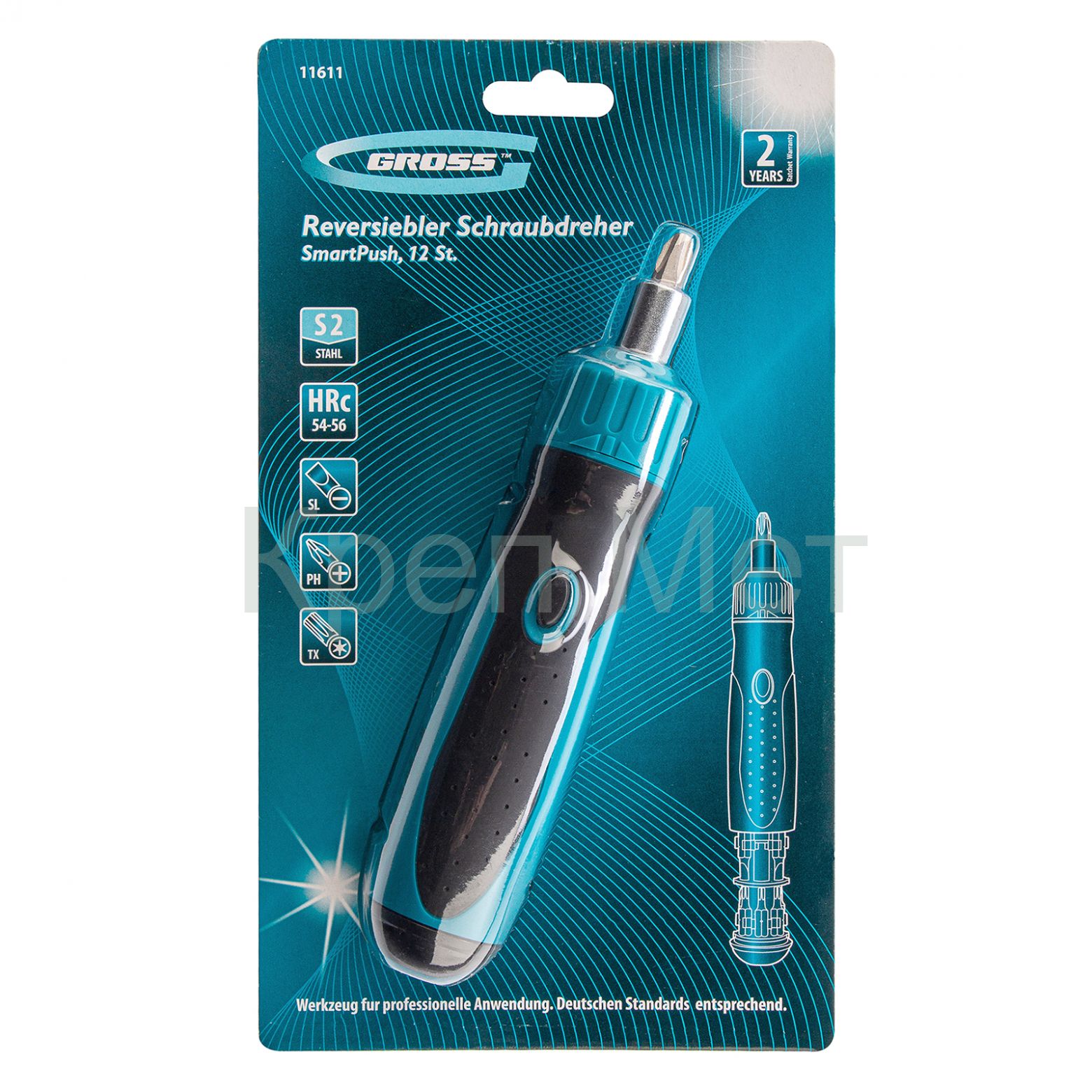 Отвертка реверсивная, механизм SmartPush 12 шт, S2 Gross