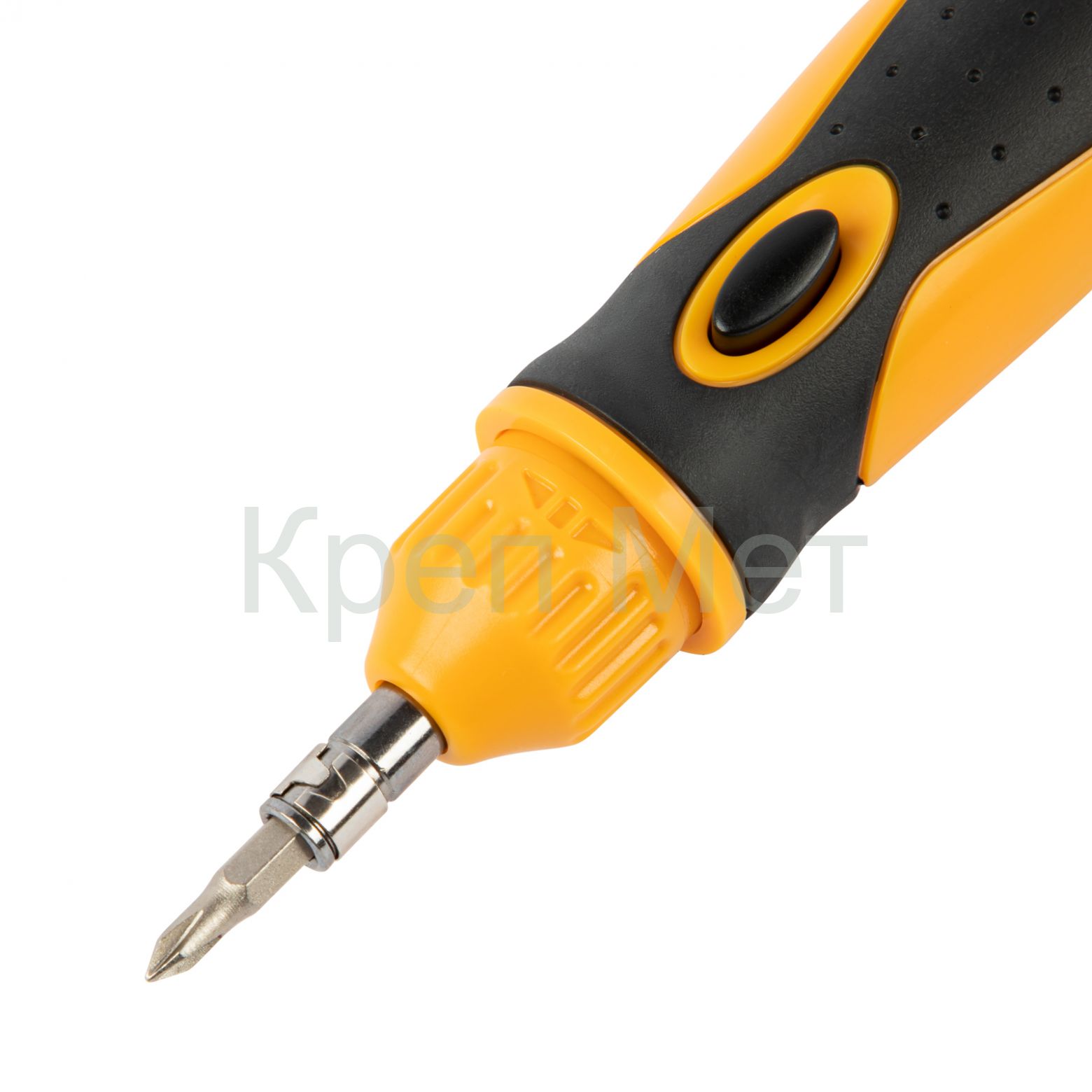 Реверсивная отвертка Denzel mini 7711609 с механизмом Smart Push комплектуется 11 сменными битами из стали CrMo для точных работ с маленькими деталями. С ее помощью можно отремонтировать электротехнику, часы, очки, детские игрушки, мелкие бытовые приборы и т.д. Реверсивный механизм повышает удобство и скорость работы, снижая усталость рук. Отвертка станет незаменимым помощником в доме и мастерской.