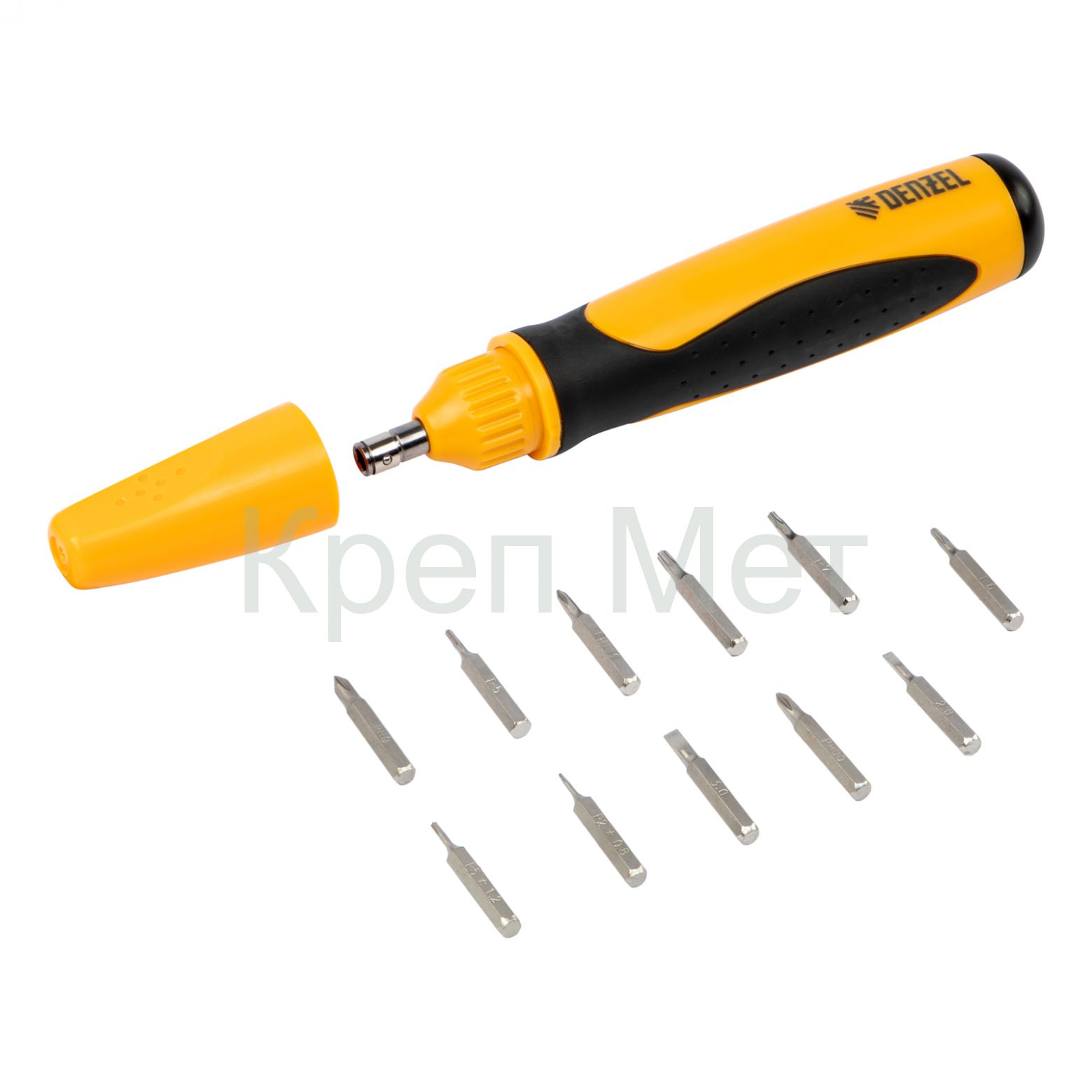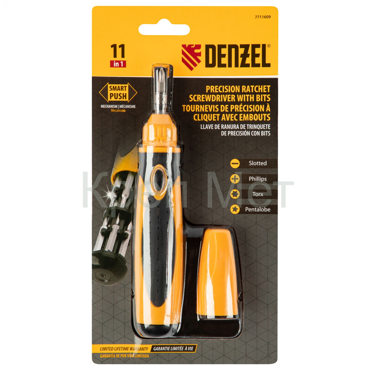 Отвертка реверсивная, механизм SmartPush mini 11 шт, CrMo Denzel