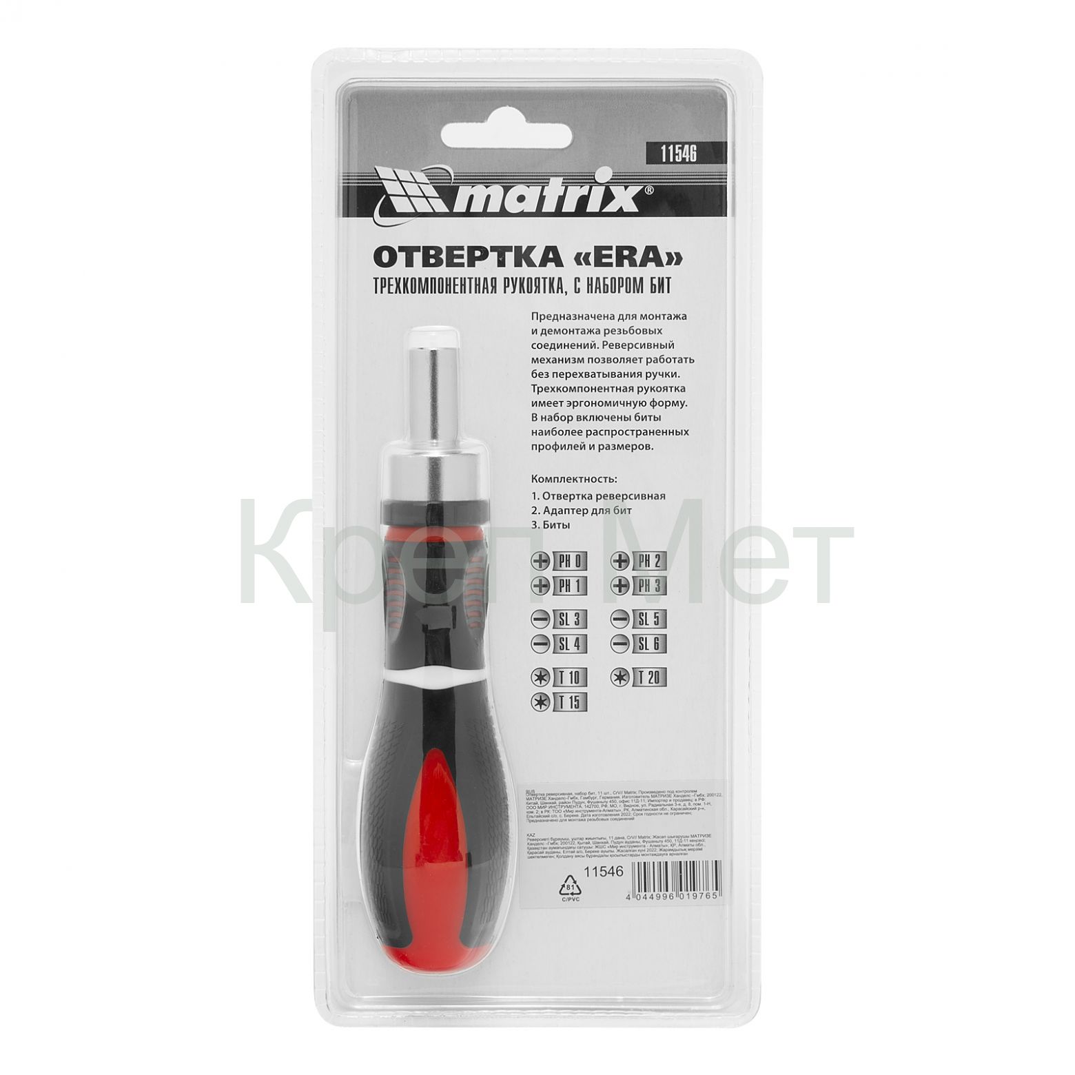 Отвертка реверсивная, набор бит, 11 шт, CrV Matrix