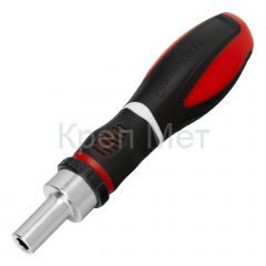 Реверсивная отвертка Matrix 11546 с набором бит из 11 шт., изготовленных из стали CrV, используется для монтажа и демонтажа резьбовых соединений. Храповой механизм ускоряет закручивание и откручивание крепежа, поскольку позволяет не тратить время и силы на перехватывание ручки. Поворотное кольцо для переключения реверса обеспечивает возможность вращения в противоположном направлении. В комплект поставки входят биты самых распространенных размеров со шлицами PH, SL и Torx. Отвертка будет полезна во время сборки мебели, ремонта электроприборов, велосипедов, мотоциклов и автомобилей.