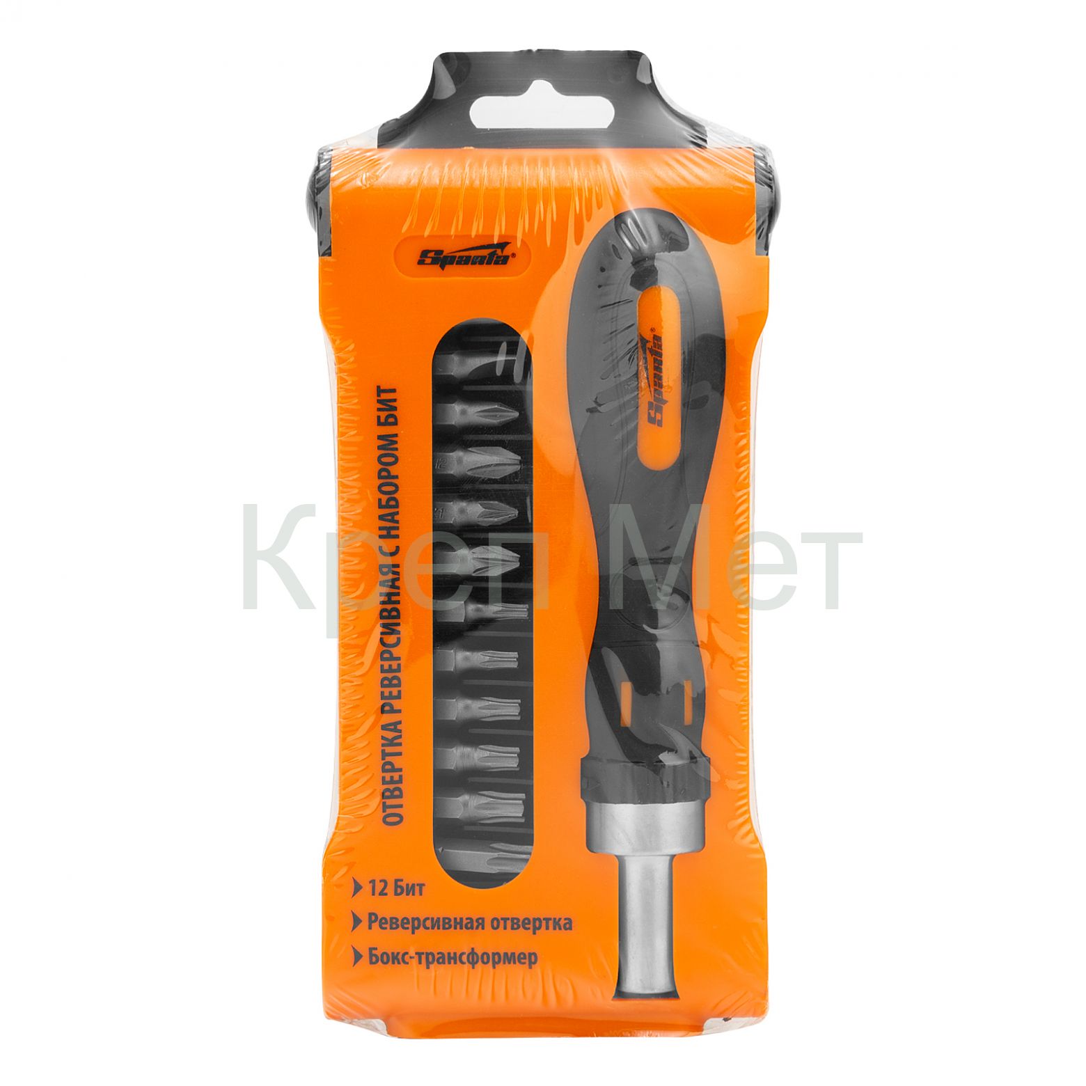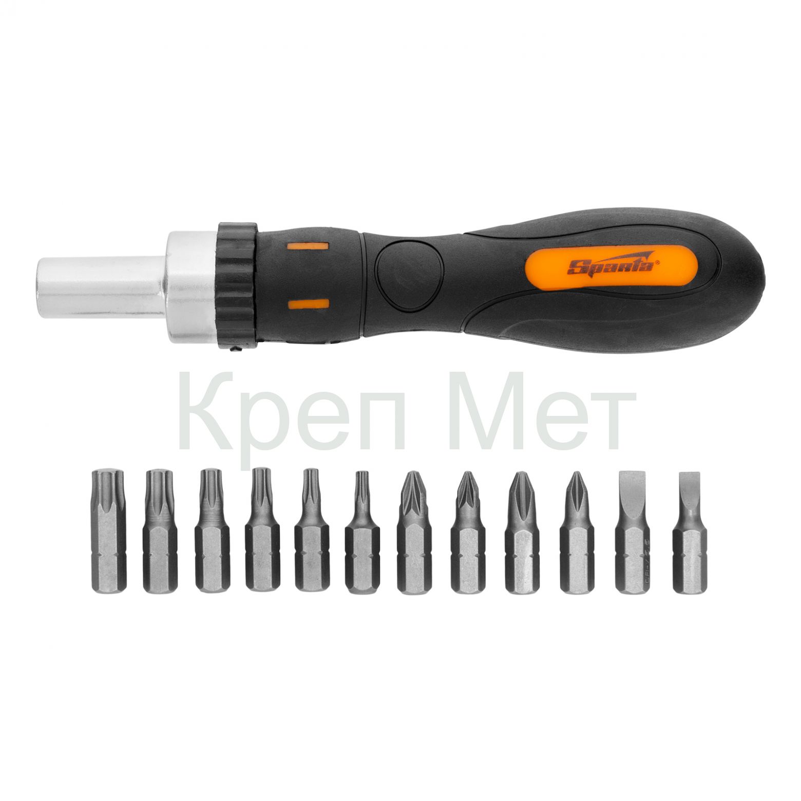 Отвертка реверсивная с набором бит, CrV, 12 шт, Sparta