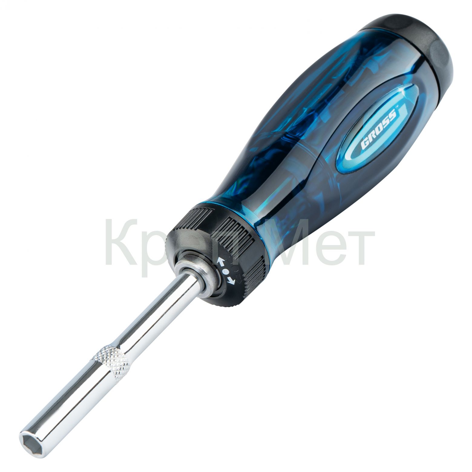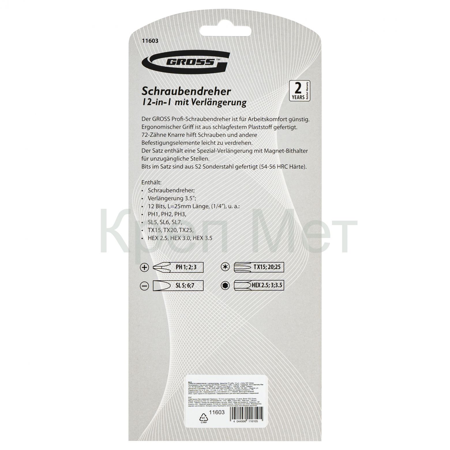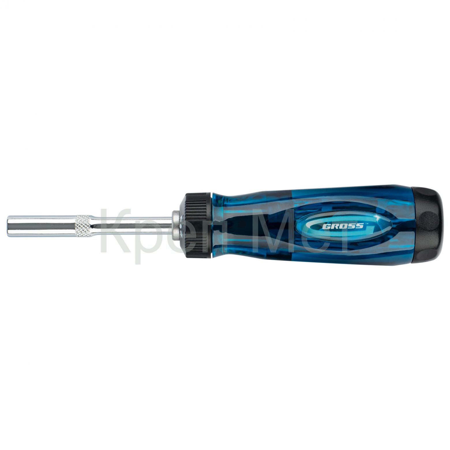 Отвертка реверсивная с удлинителем, трещотка 72 зуба, 12 шт, сталь S2 Gross