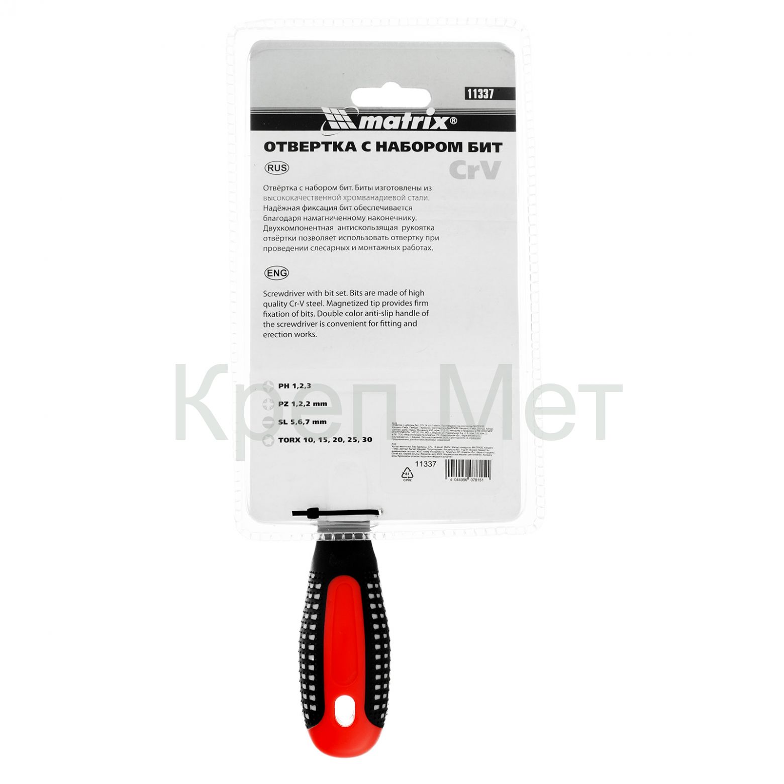 - Отвертка с набором бит, CrV, 14 шт Matrix
