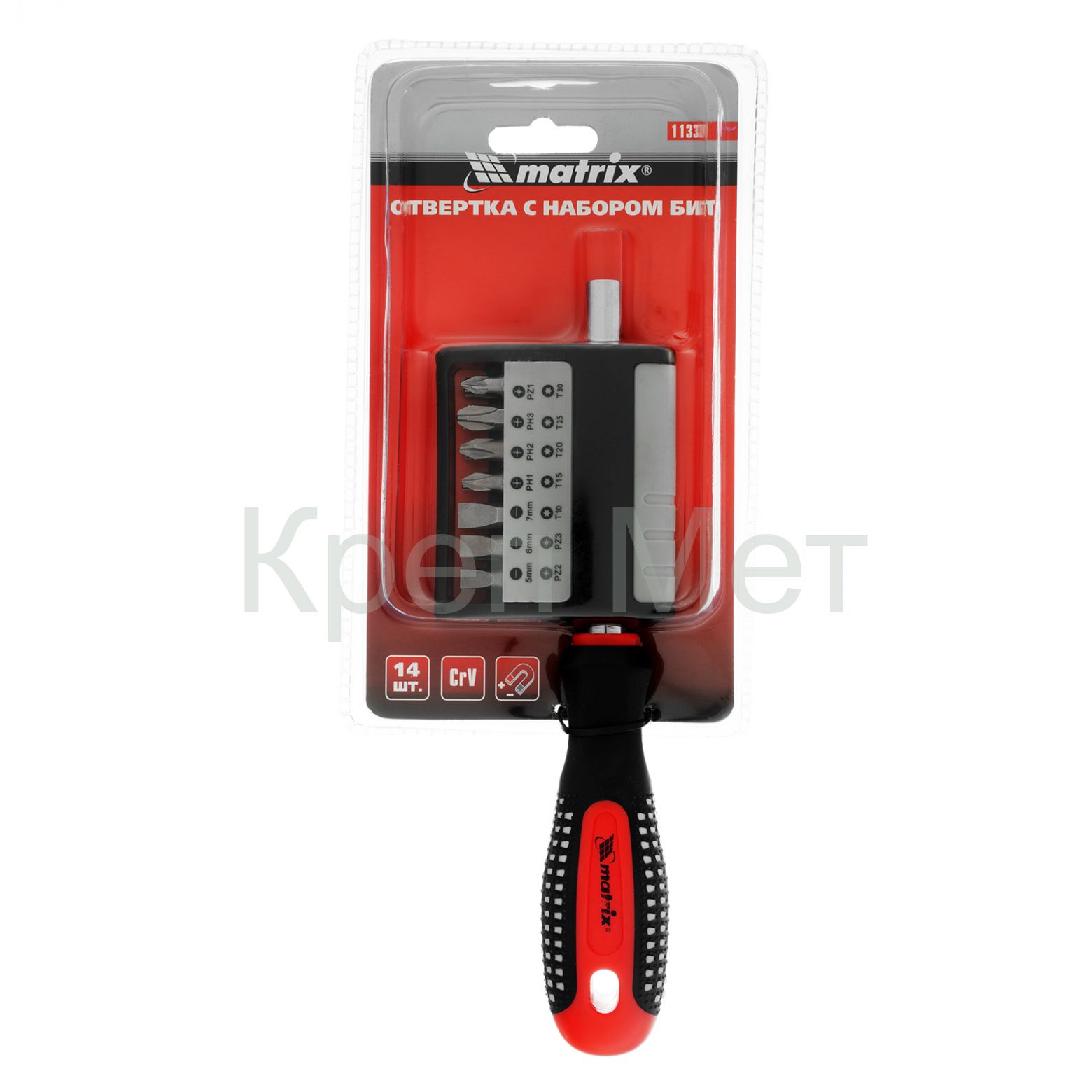 Отвертка с набором бит, CrV, 14 шт Matrix