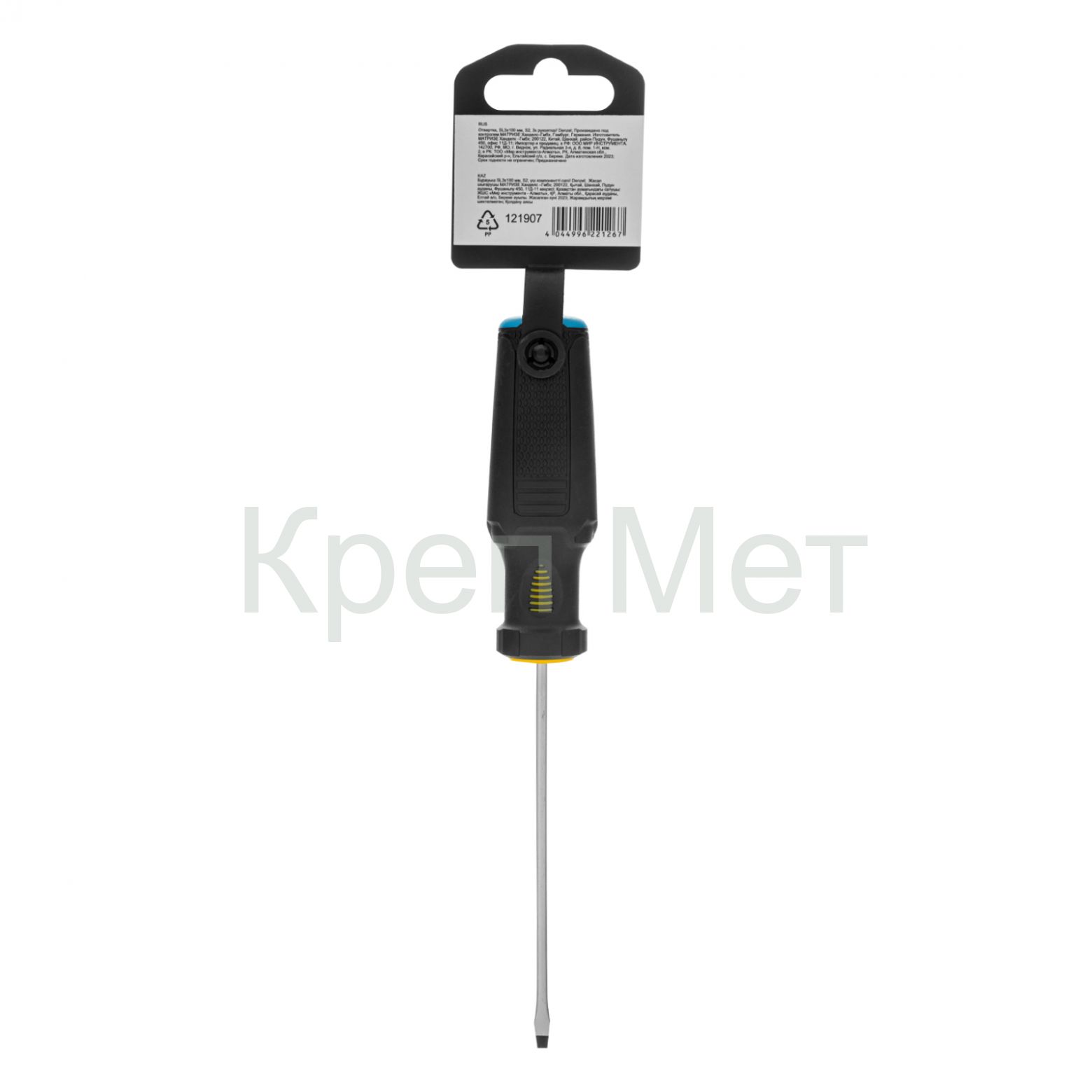 Отвертка Denzel 121907 с трехкомпонентной рукояткой, со стержнем из стали S2, длиной 100 мм, предназначена для монтажа и демонтажа винтов и саморезов с прямым шлицем SL3. Высокоточный намагниченный шлиц крепко фиксируется в головке крепежа. Отвертка выдерживает интенсивное применение, предназначена для выполнения профессиональных ремонтных и монтажных работ.