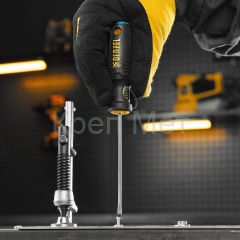 - Удобное хранение — отверстие в рукоятке позволяет подвешивать отвертку на крючок или скобу.