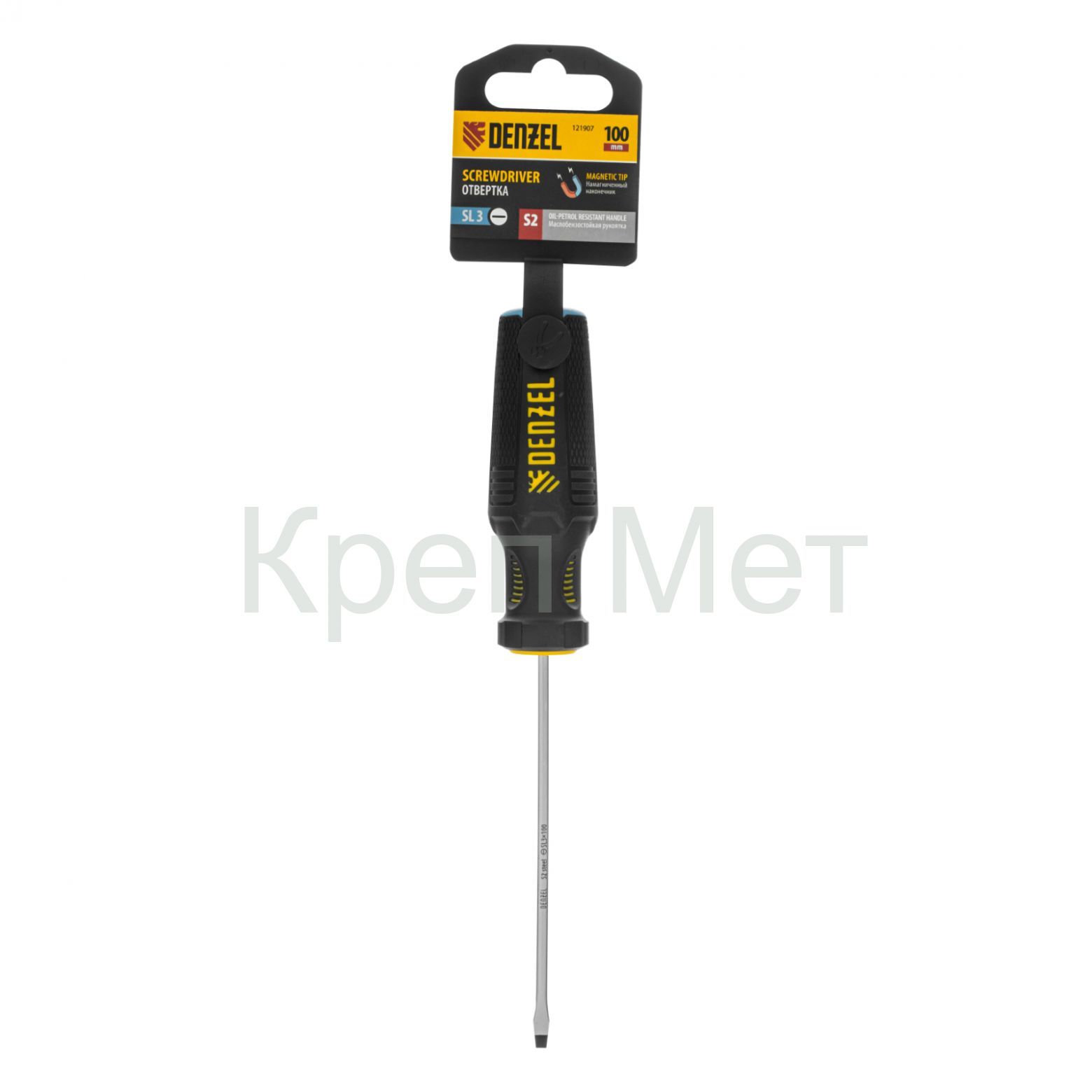 - Отвертка, SL3х100 мм, S2, 3к рукоятка Denzel