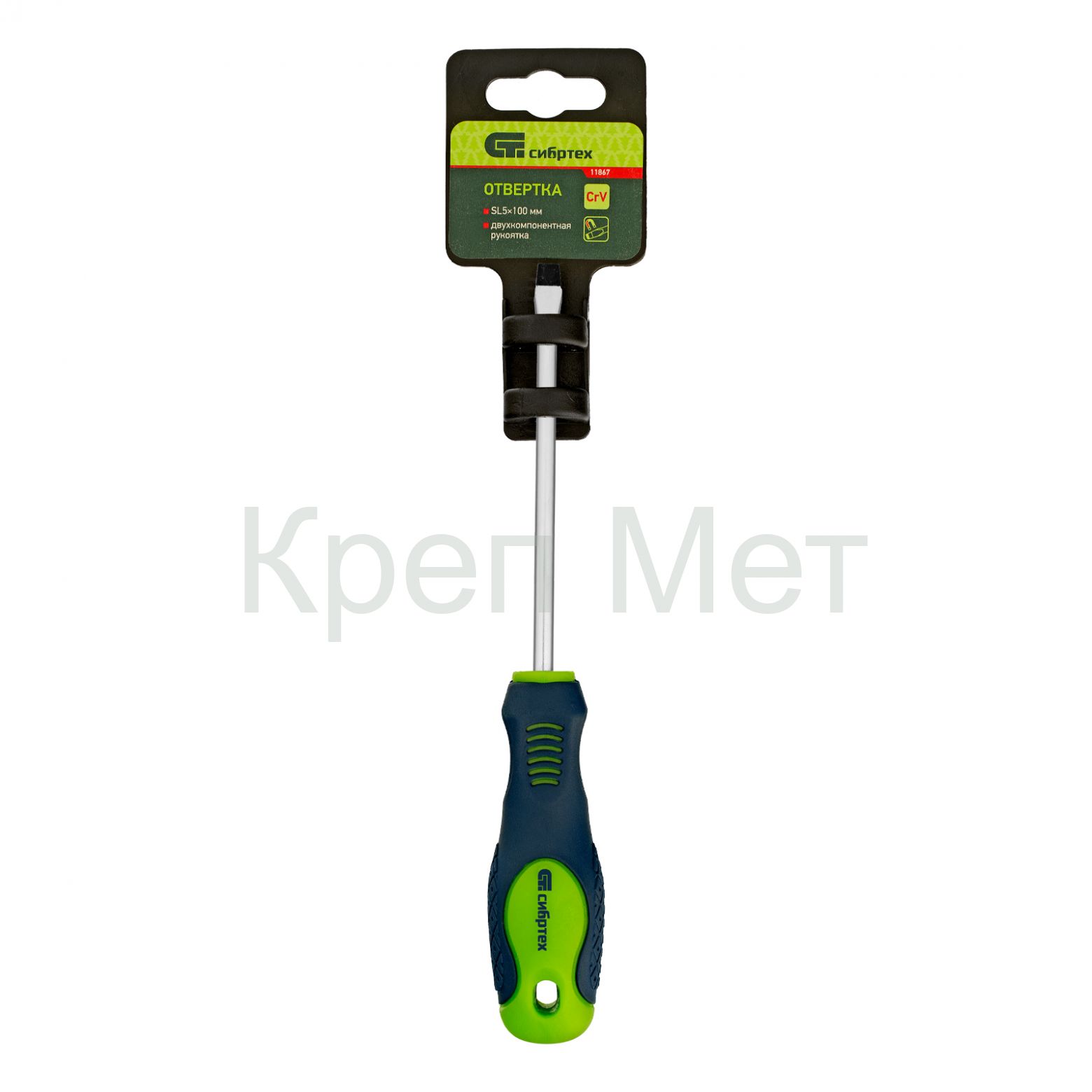 Отвертка, SL5 х 100 мм, CrV, двухкомпонентная рукоятка Сибртех