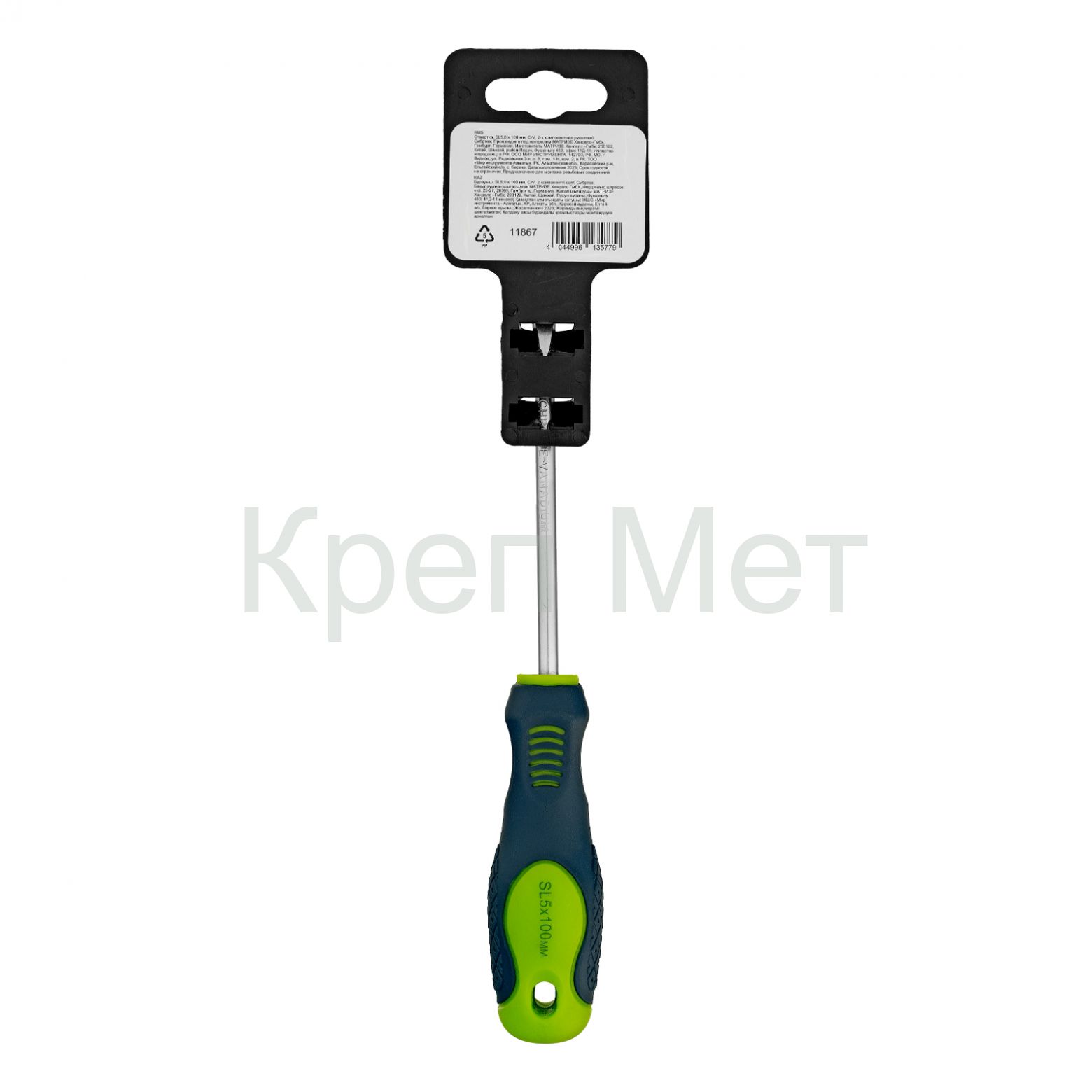 - Отвертка, SL5 х 100 мм, CrV, двухкомпонентная рукоятка Сибртех
