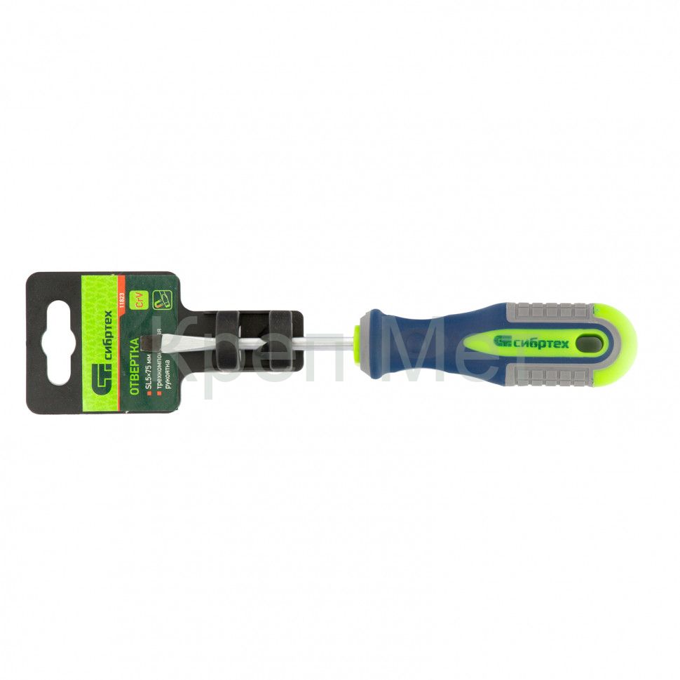 - Отвертка, SL5 х 75 мм, CrV, трехкомпонентная рукоятка Сибртех