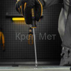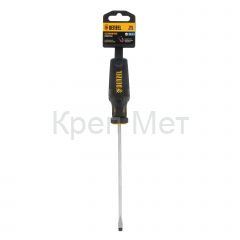 Отвертка SL5 х 150 мм Denzel 12197 из стали CrV, с трехкомпонентной рукояткой, используется для монтажа и демонтажа винтов и саморезов с прямым шлицем Slotted. Намагниченный шлиц крепко фиксируется в головке крепежа. Отвертка выдерживает интенсивное применение и предназначена для выполнения профессиональных ремонтных и монтажных работ.