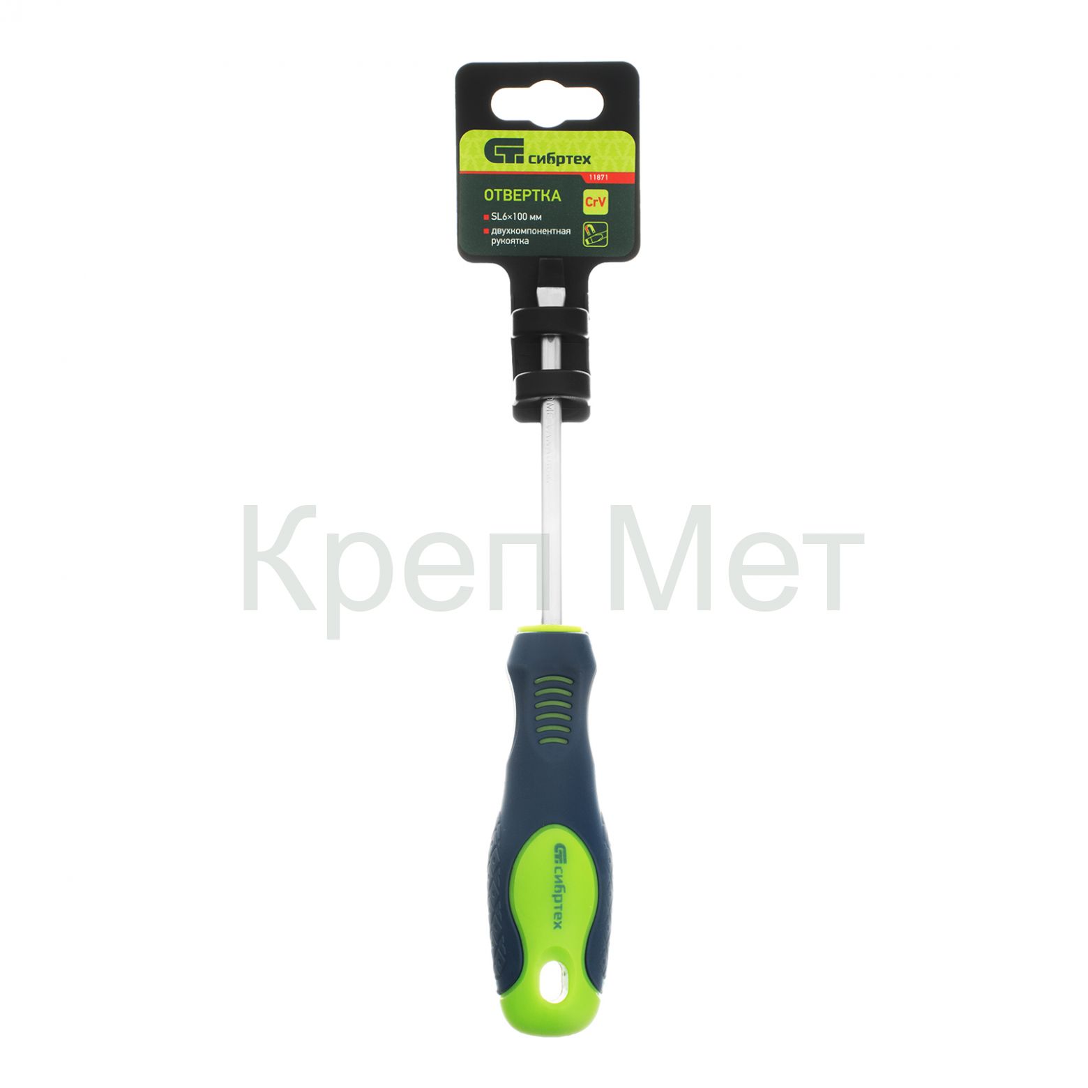 - Отвертка, SL6 х 100 мм, CrV, двухкомпонентная рукоятка Сибртех
