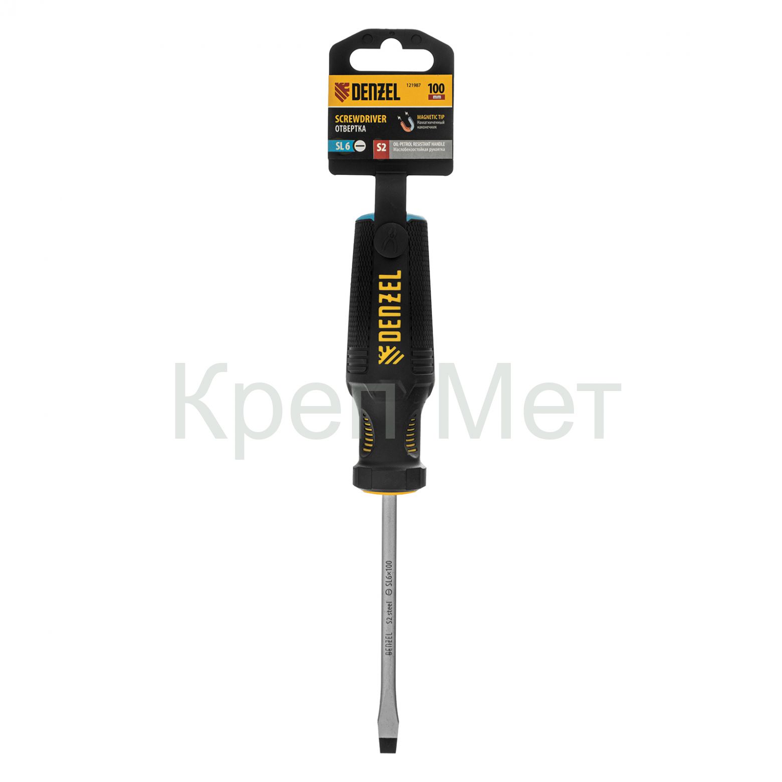 Отвертка, SL6x100 мм, S2, 3к рукоятка Denzel