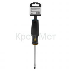 Отвертка Denzel 121987 с трехкомпонентной рукояткой, со стержнем из стали S2, длиной 100 мм, предназначена для монтажа и демонтажа винтов и саморезов с прямым шлицем SL6. Высокоточный намагниченный шлиц крепко фиксируется в головке крепежа. Отвертка выдерживает интенсивное применение, предназначена для выполнения профессиональных ремонтных и монтажных работ.