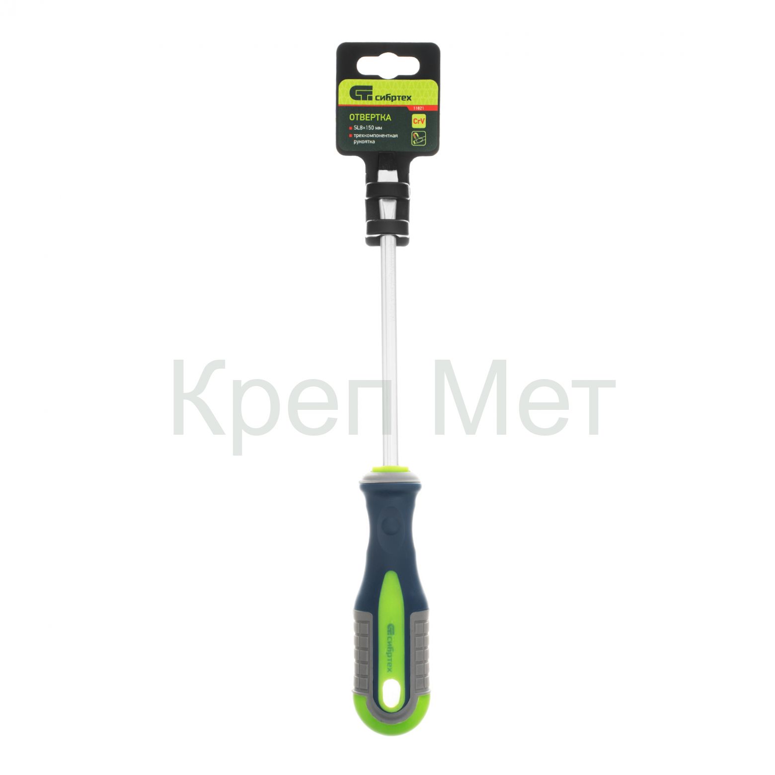 Отвертка, SL8 х 150 мм, CrV, трехкомпонентная рукоятка Сибртех