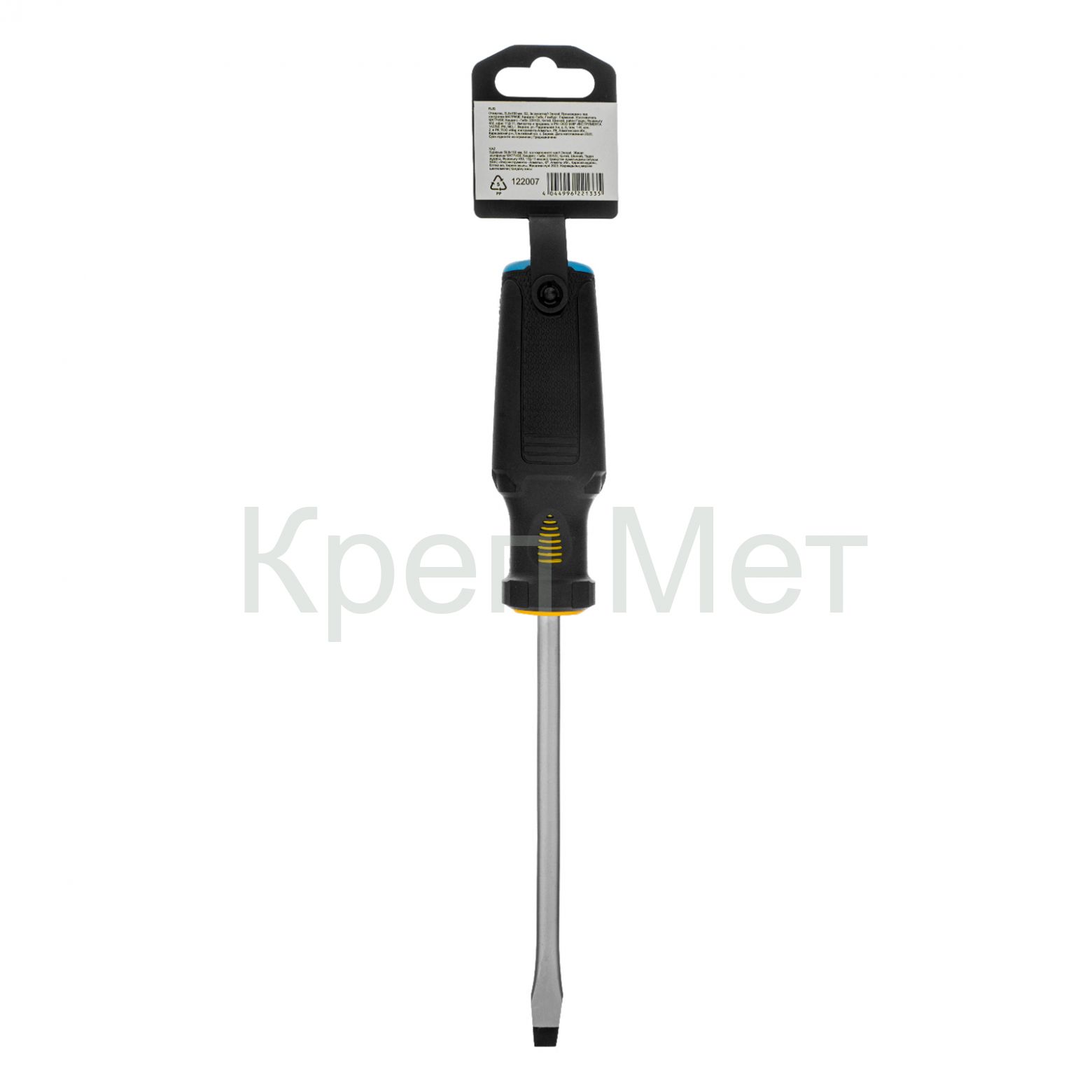 Отвертка Denzel 122007 с трехкомпонентной рукояткой, со стержнем из стали S2, длиной 150 мм, предназначена для монтажа и демонтажа винтов и саморезов с прямым шлицем SL8. Высокоточный намагниченный шлиц крепко фиксируется в головке крепежа. Отвертка выдерживает интенсивное применение, предназначена для выполнения профессиональных ремонтных и монтажных работ.