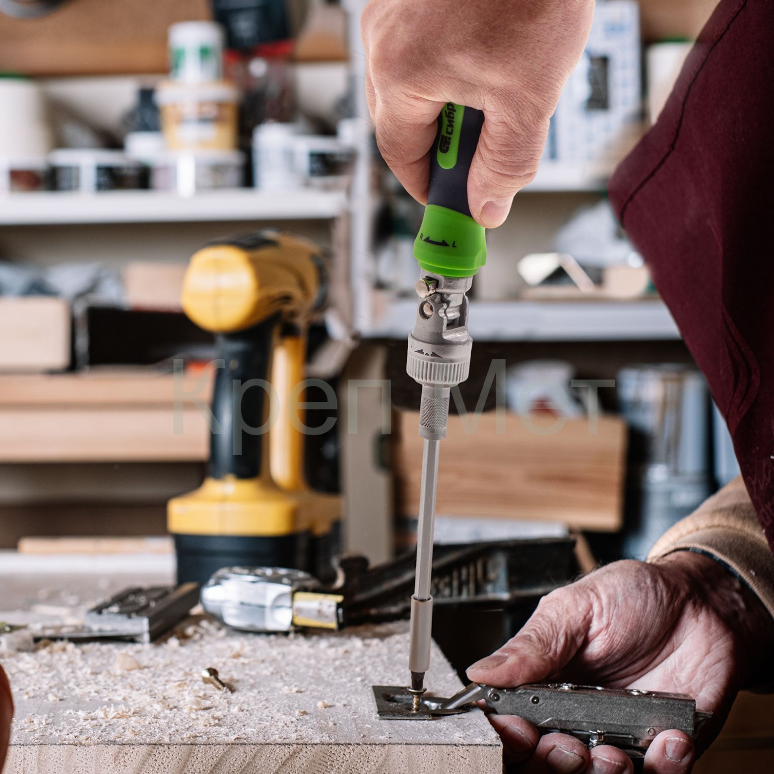 Реверсивные отвертки с набором бит и торцевых головок Сибртех 13363 — набор из 61 предмета из стали CrV, предназначенный для частных и профессиональных мастеров. Отвертка с поворотной головой позволяет осуществлять монтаж/демонтаж крепежа в труднодоступных местах, а отвертка для точных работ пригодится для ремонта техники и приборов с микровинтами.