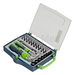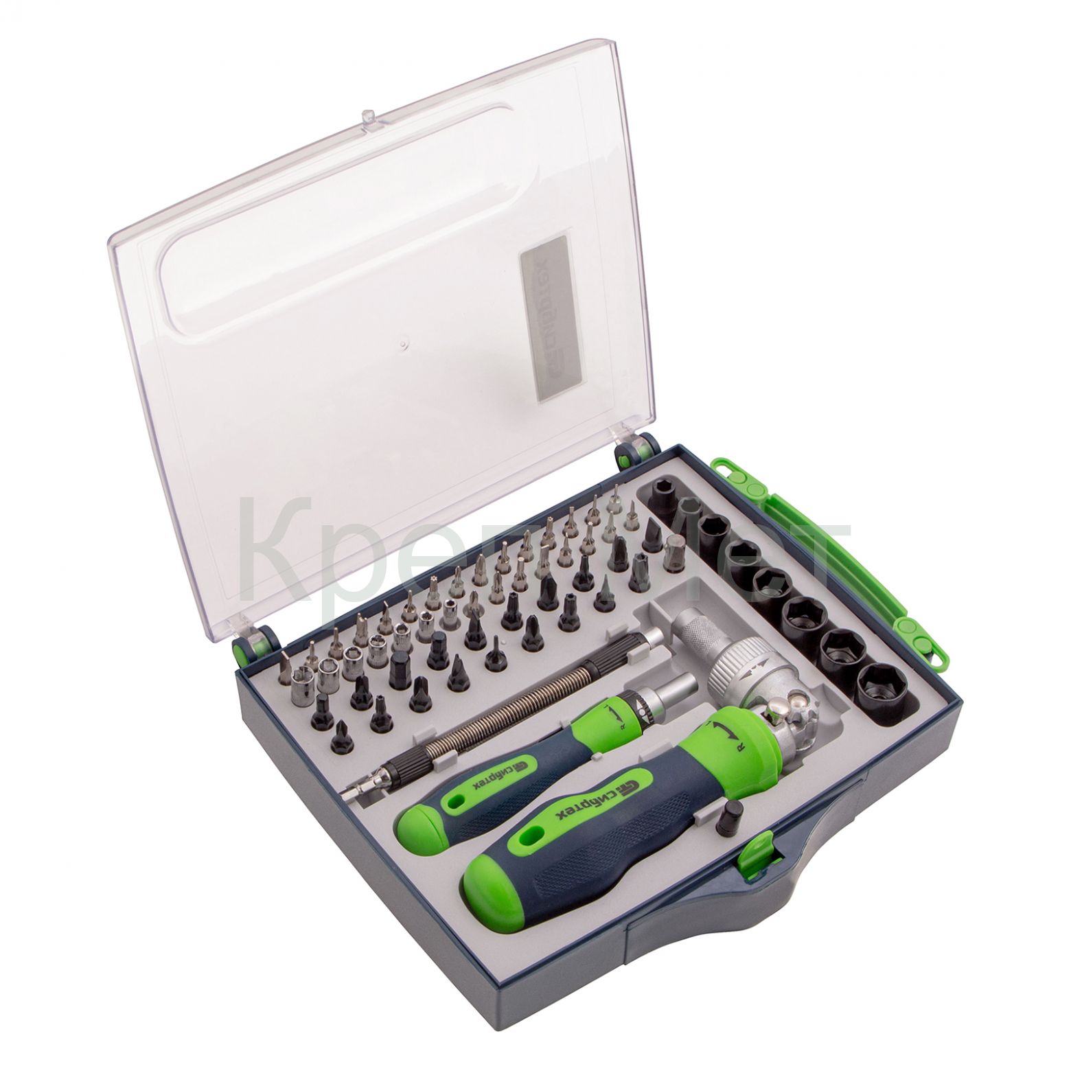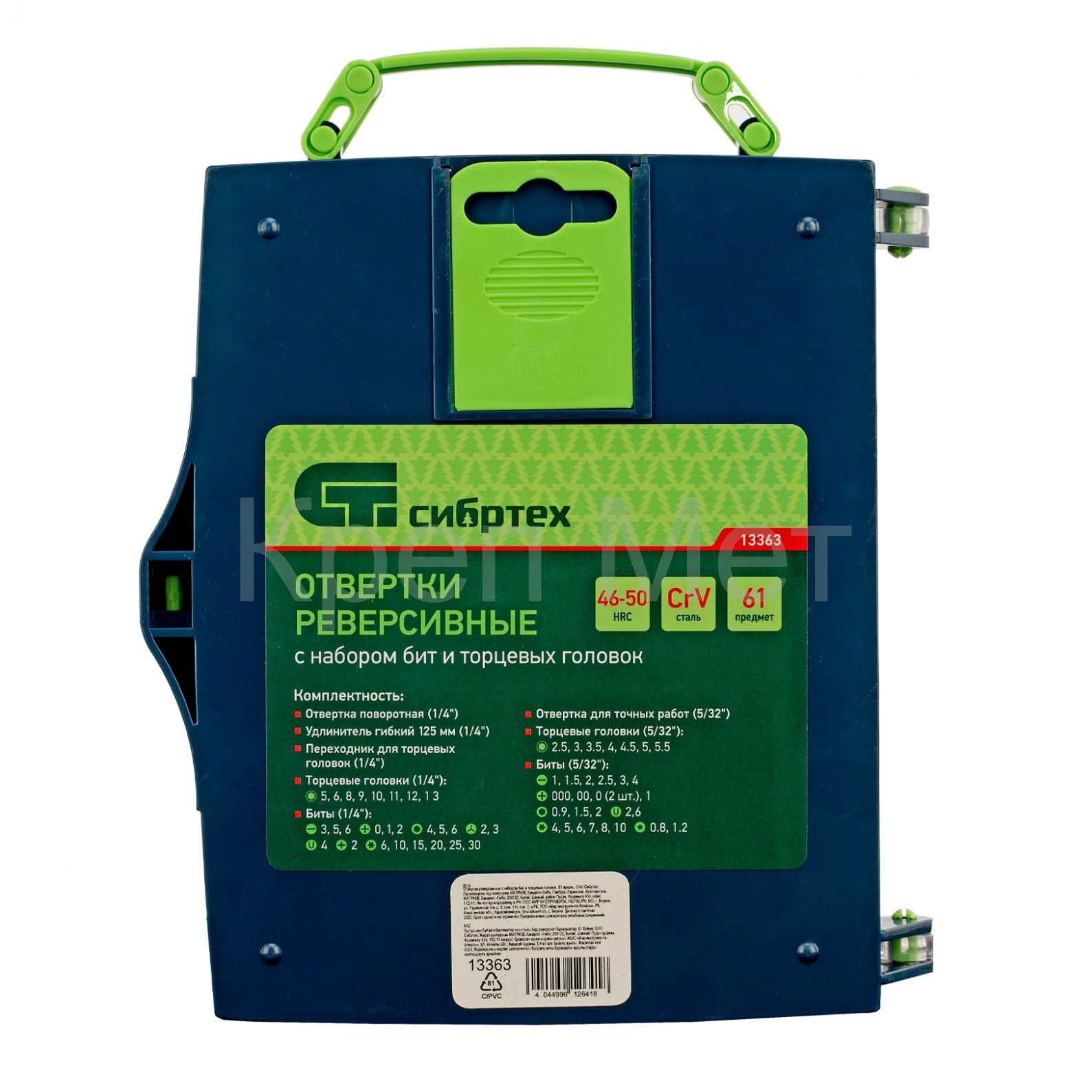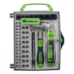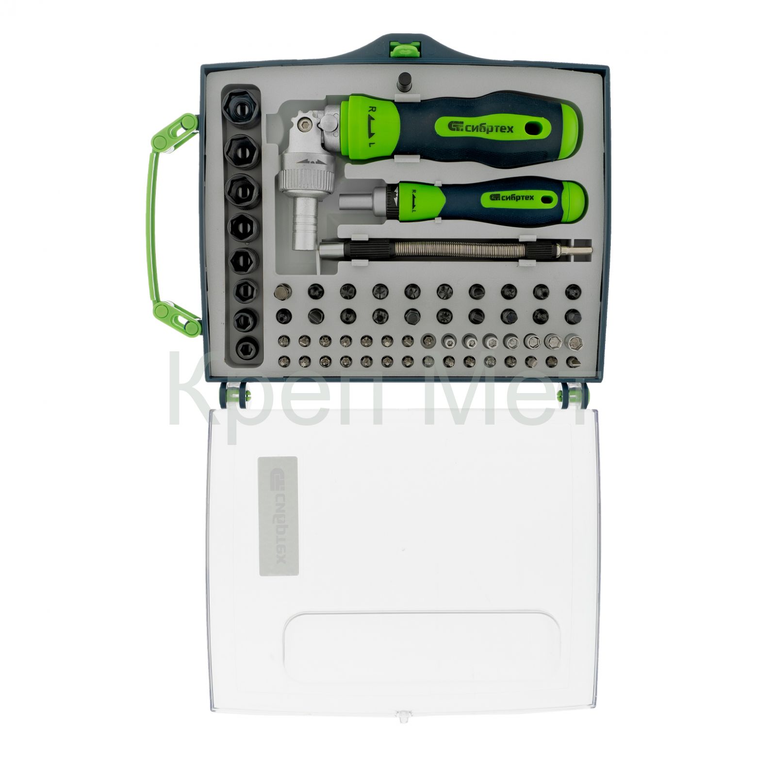 - Отвертки реверсивные с набором бит, торцевых головок, 61 предмет, CrV Сибртех