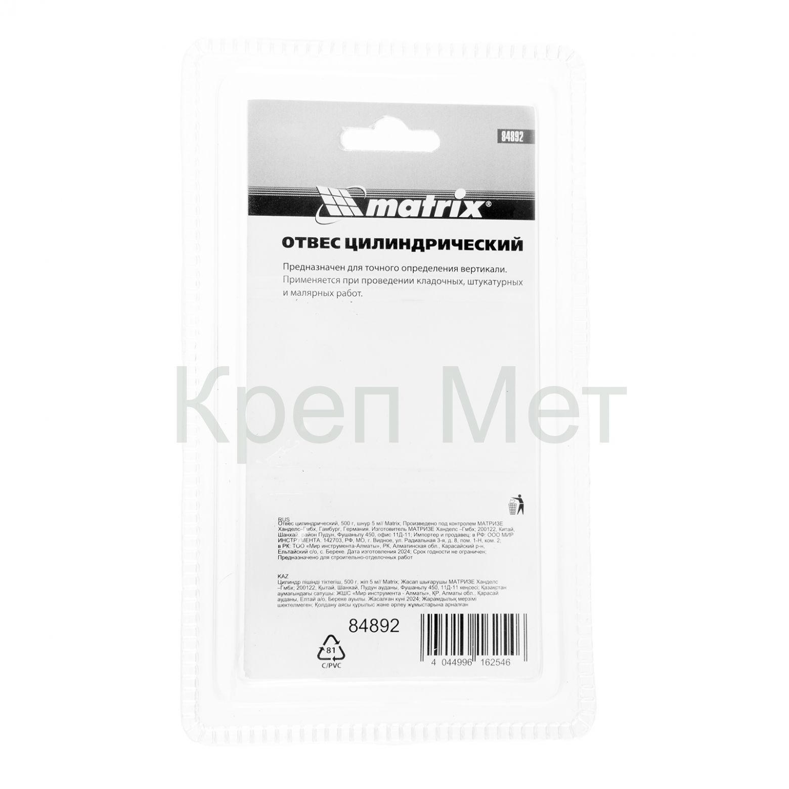 Отвес цилиндрический, 500 г, шнур 5 м Matrix