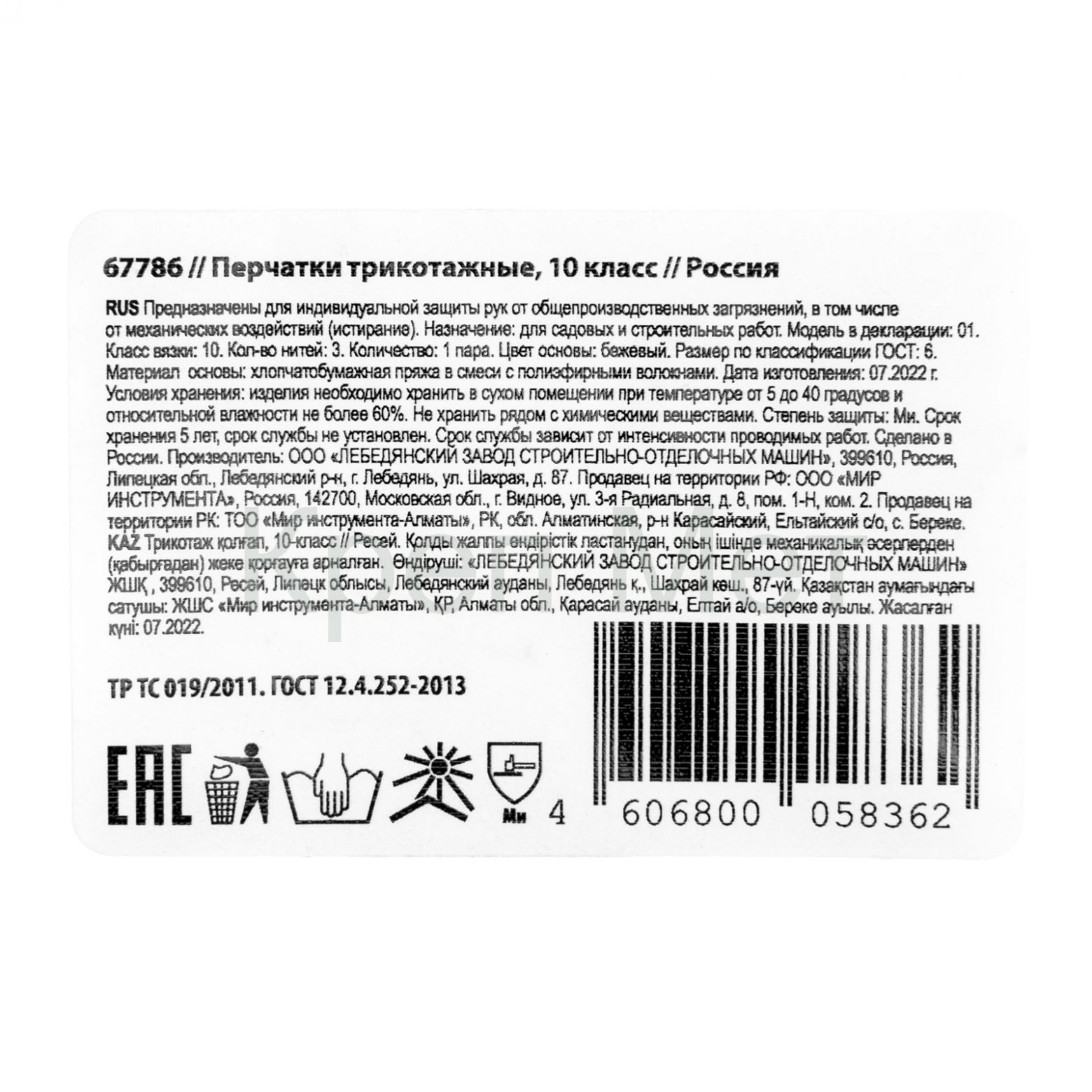 Трикотажные перчатки 67786 10 класса вязки будут полезны на строительной площадке, в саду, сборочном цеху. За счет высокой плотности они защищают руки от появления мозолей, царапин и загрязнения. В то же время перчатки обеспечивают свободу движений и тактильность пальцев, что позволяет проводить точные работы.