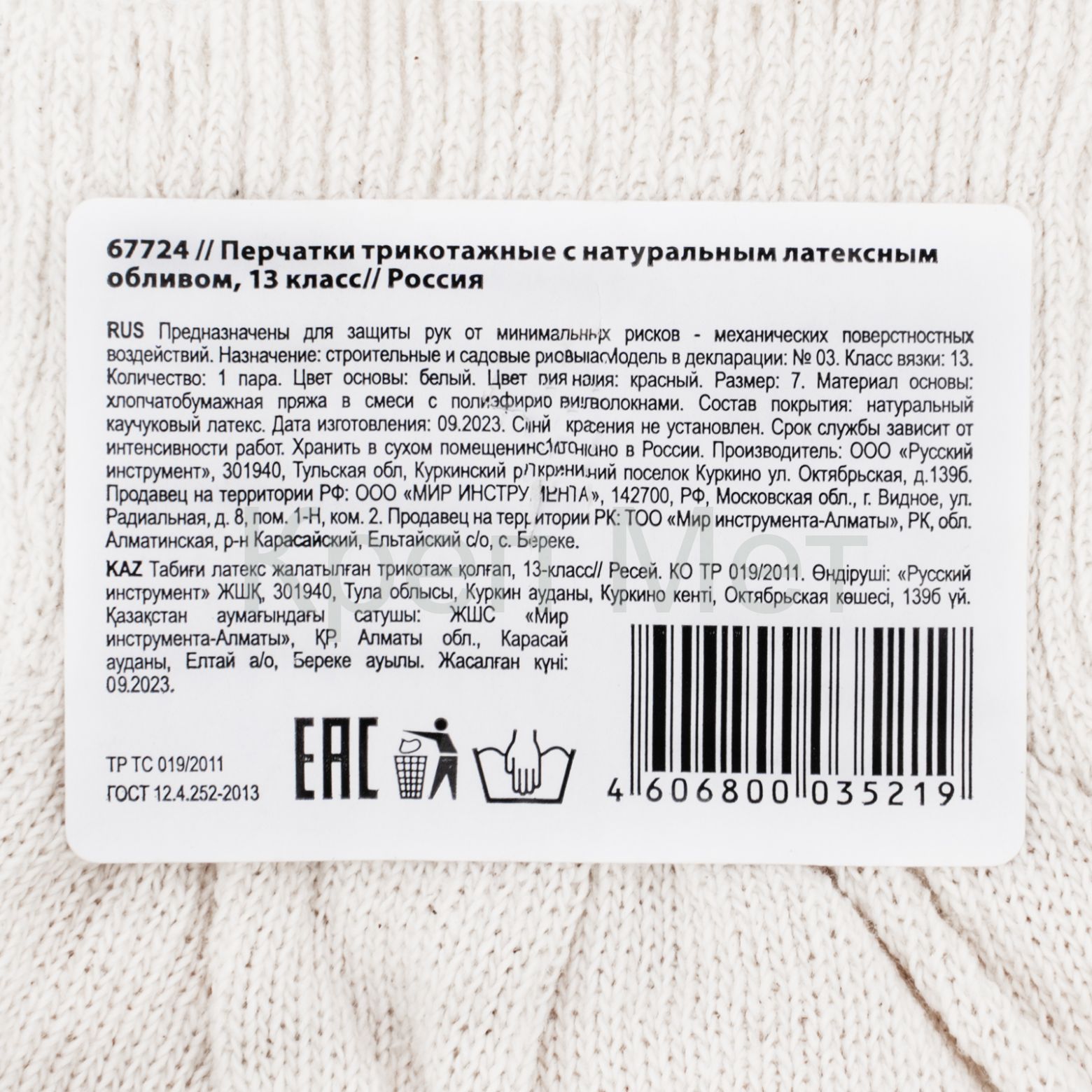 - Перчатки х/б, латексный облив, 13 класс, 36 гр