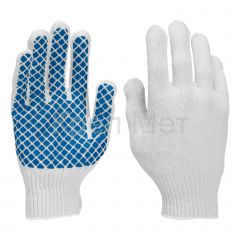 - Перчатки х/б, ПВХ покрытие, "Шахматный облив", 5 пар в упаковке, 10 класс