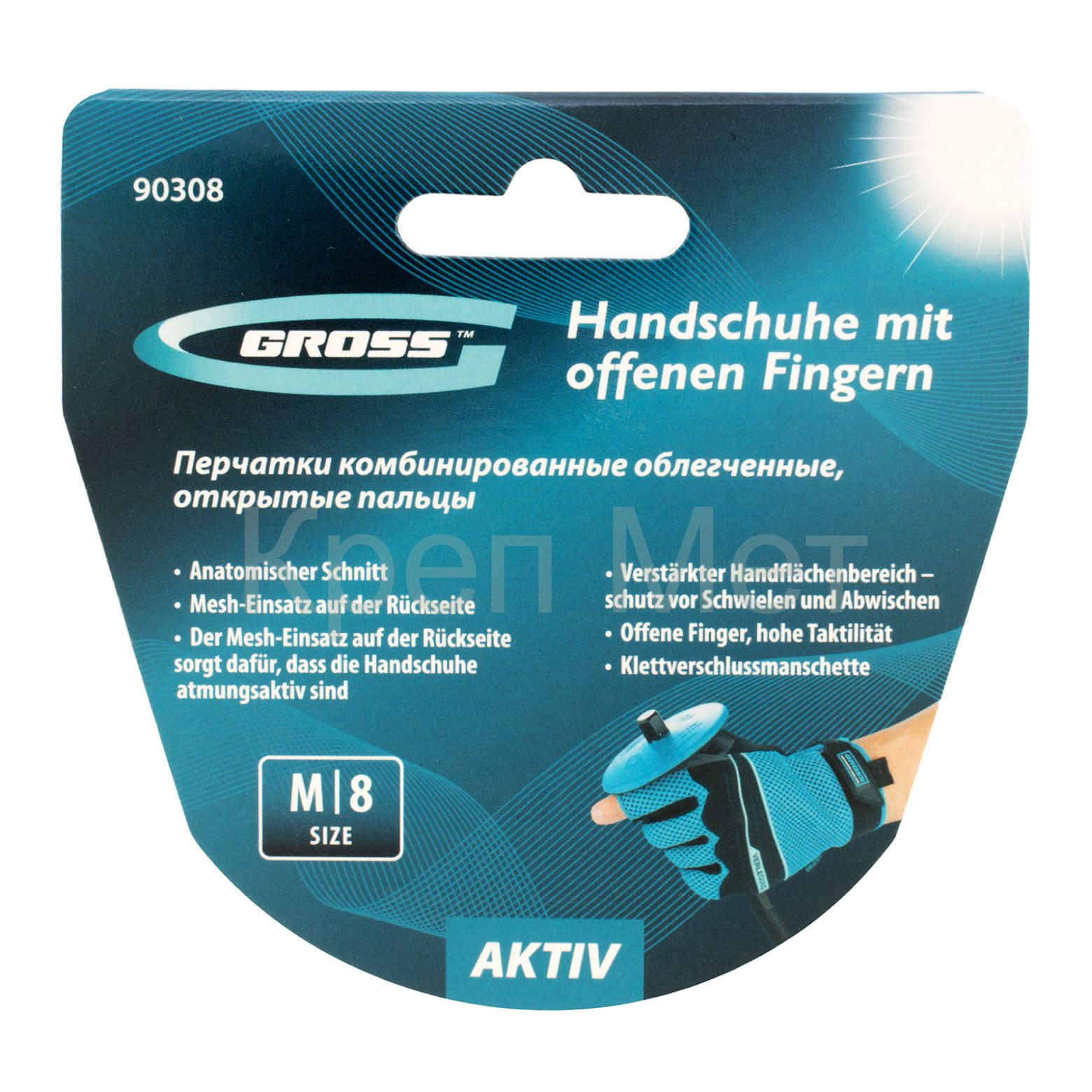 Перчатки комбинированные облегченные, открытые пальцы, AKTIV, размер М (8) Gross