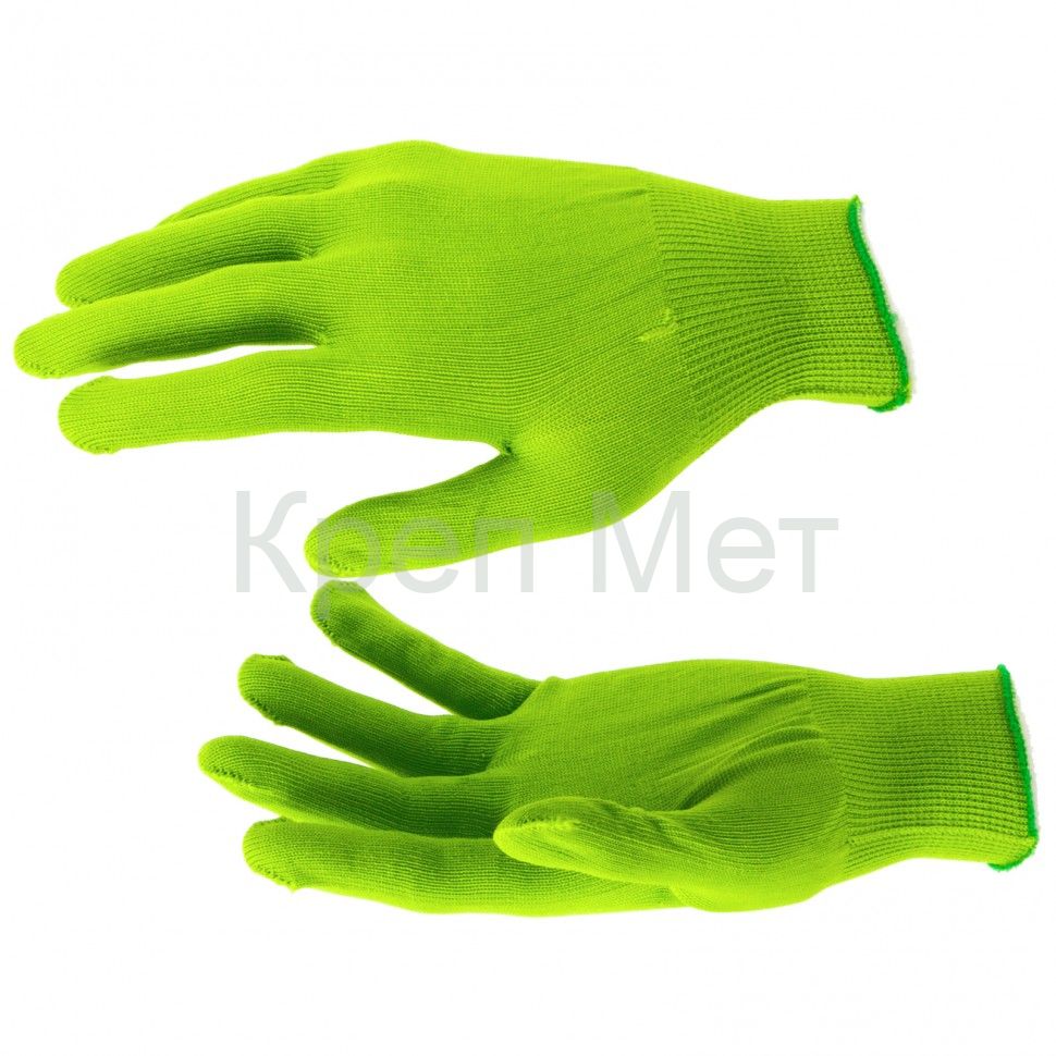 Перчатки 67823 изумрудного цвета, из нейлона, 13 класса вязки, размера L, надежно защищают руки от мозолей, ссадин, царапин и порезов. Тонкая ткань обеспечивает высокую тактильную чувствительность пальцев, поэтому перчатки подходят для работы с мелкими предметами. Будут полезны во время строительства, ремонта, сборочных работ, пригодятся также в быту.