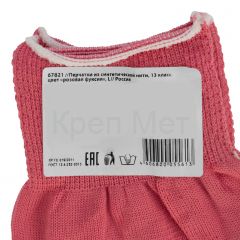 Перчатки из синтетической нити 67821, цвета «розовая фуксия», 13 класс вязки, размера L, применяются для защиты рук от царапин и ссадин. Они станут незаменимым помощником при осуществлении строительных, ремонтных, садовых и других работ. Плотная ткань из тонких синтетических нитей сохраняет высокую чувствительность пальцев, что особенно актуально при проведении точных работ.