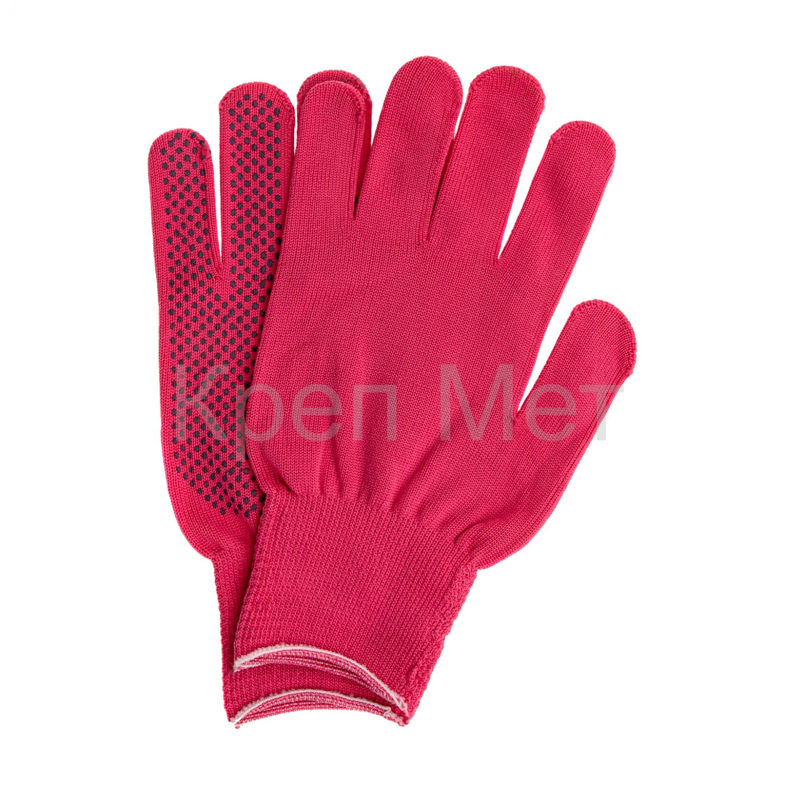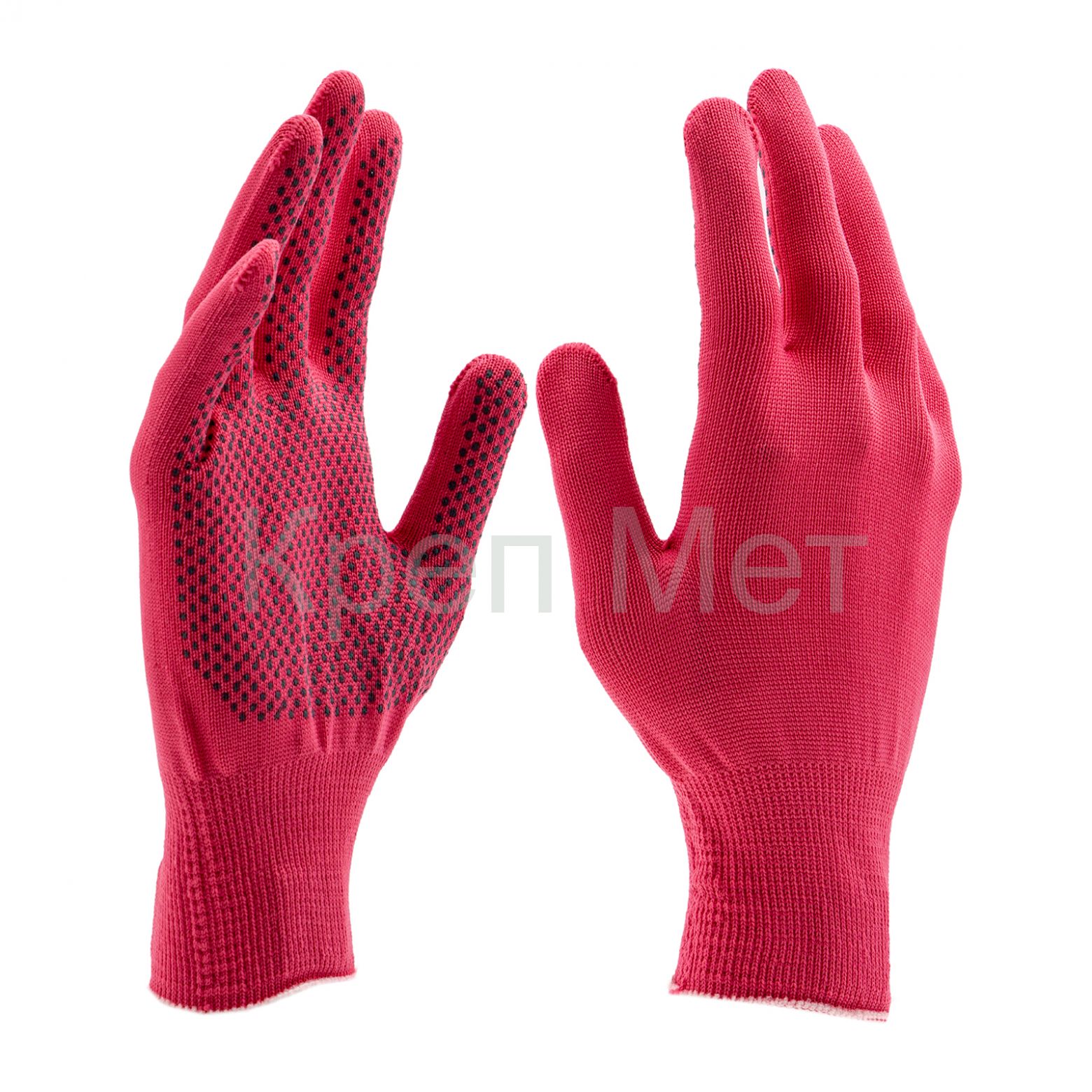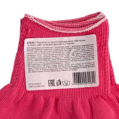 Перчатки из синтетической нити 67826 с ПВХ точкой, цвета «розовая фуксия», 13 класс вязки, размера L, применяются для защиты рук от царапин и ссадин. Они станут незаменимым помощником при осуществлении строительных, ремонтных, садовых и других работ. Плотная ткань из тонких синтетических нитей сохраняет высокую чувствительность пальцев, что особенно актуально при проведении точных работ.