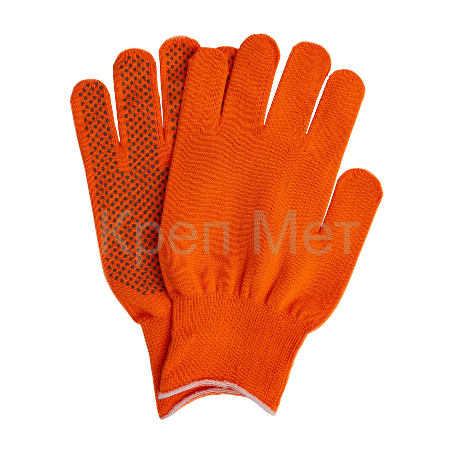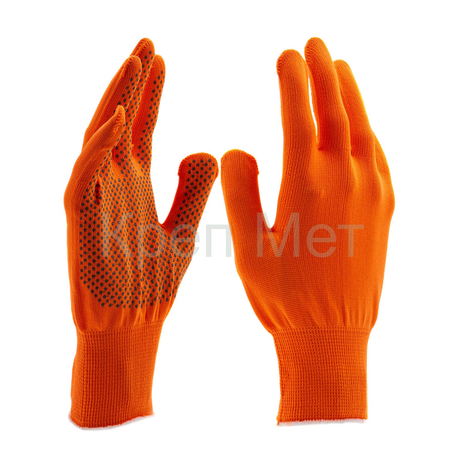 Перчатки Нейлон, ПВХ точка, 13 класс, оранжевые, XL