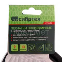 - Перчатки полиэфирные с черным нитрильным покрытием, размер 9, 13 класс вязки Сибртех