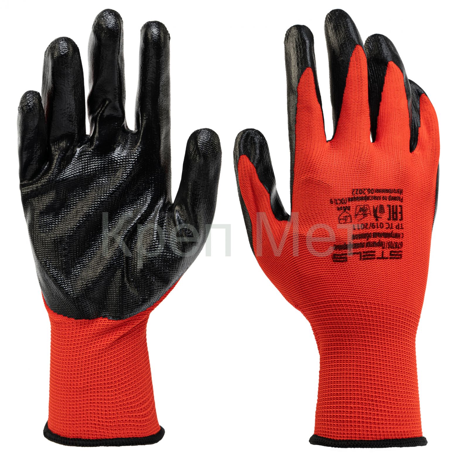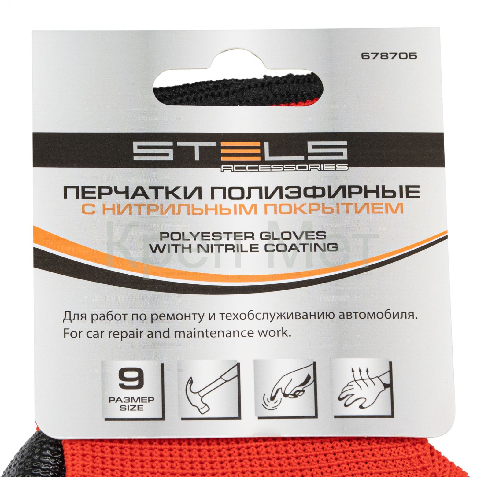 - Перчатки полиэфирные с черным нитрильным покрытием, размер 9, 13 класс вязки Stels