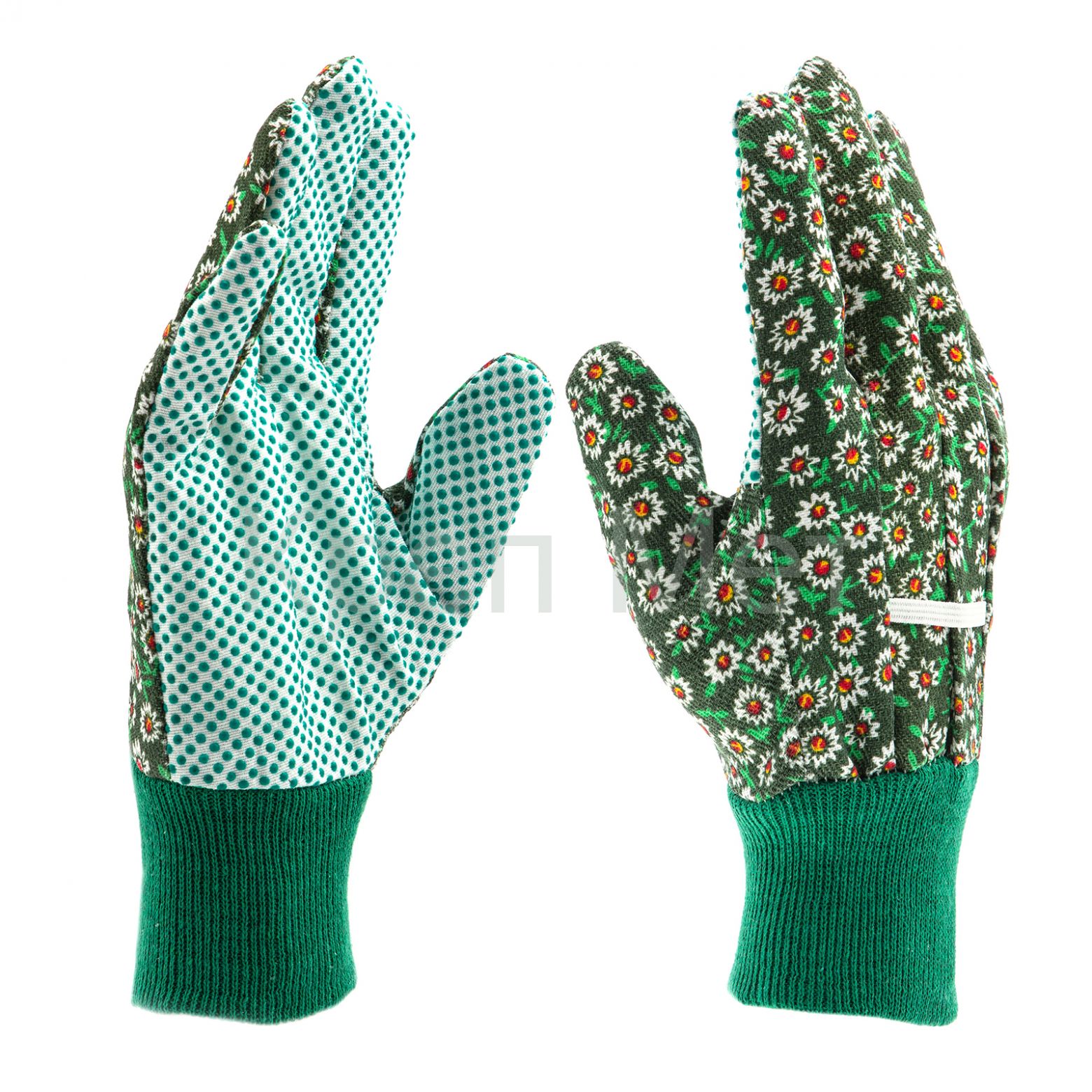 - Перчатки садовые х/б ткань с ПВХ точкой, манжет, L Palisad