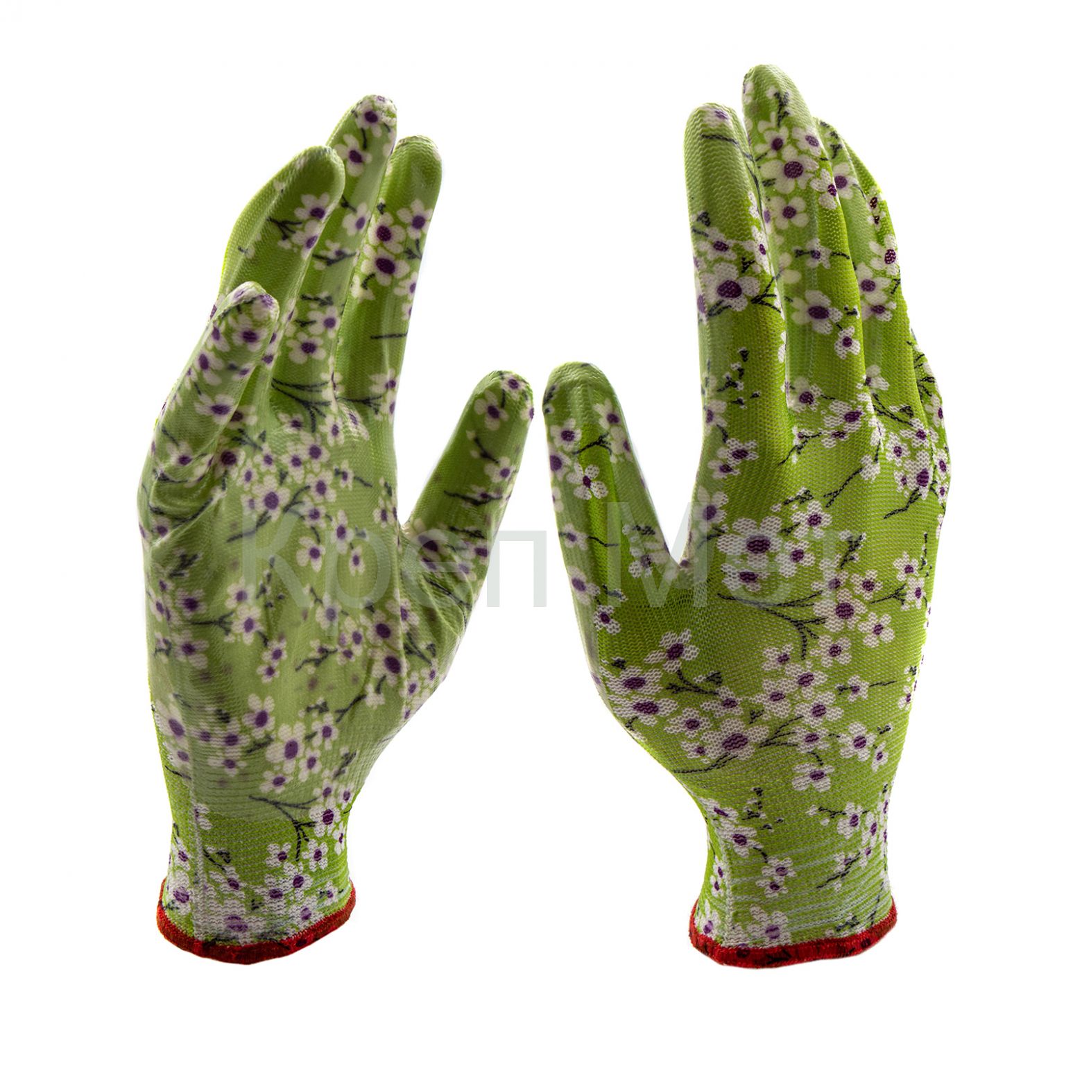 Перчатки садовые из полиэстера с нитрильным обливом, MIX цветов, M Palisad