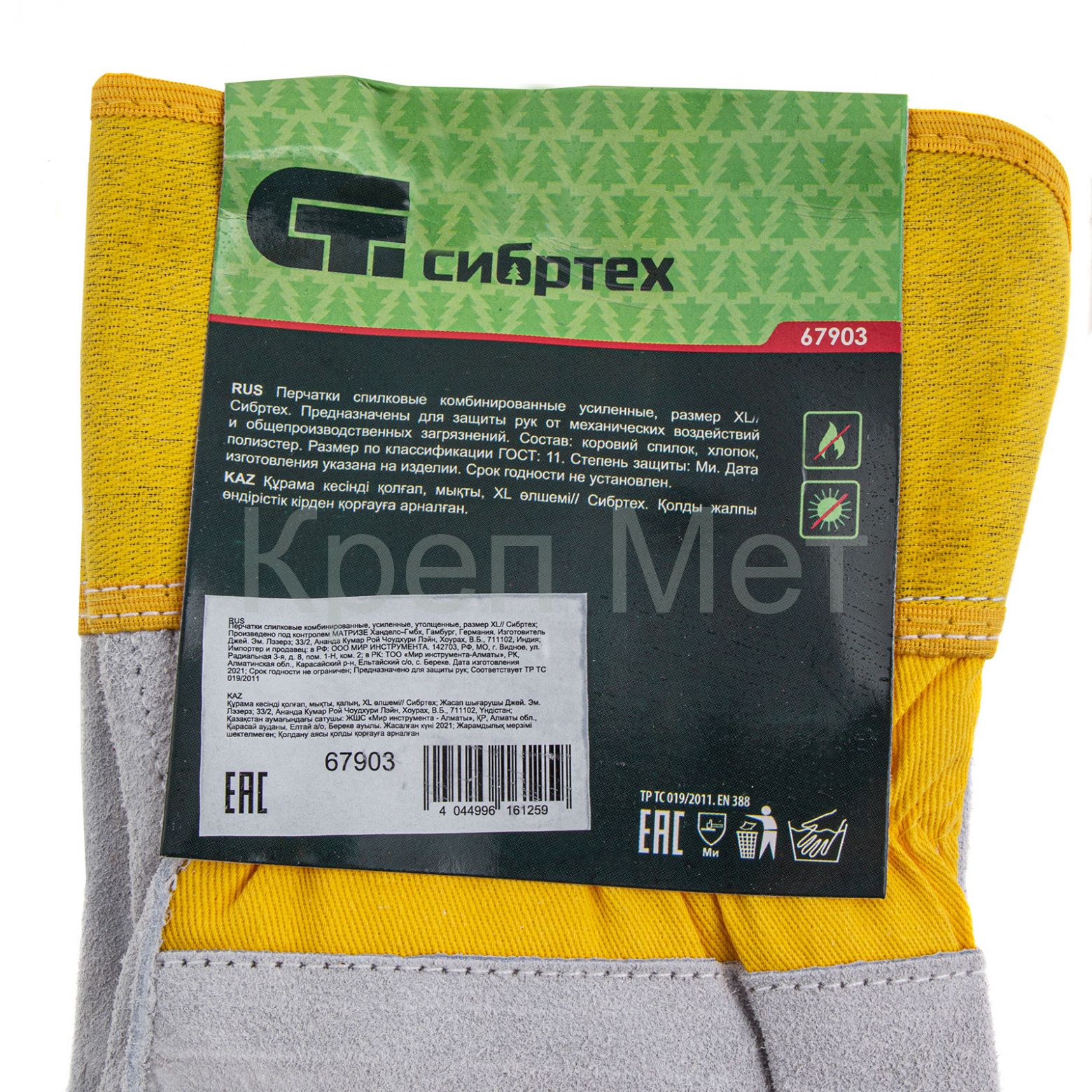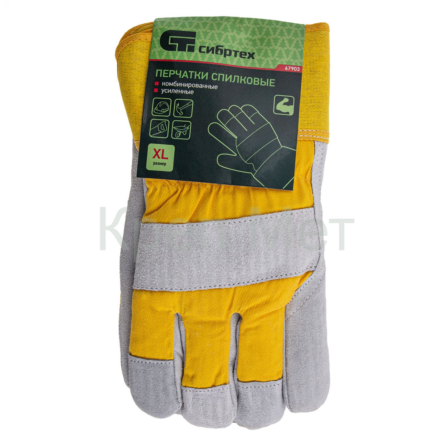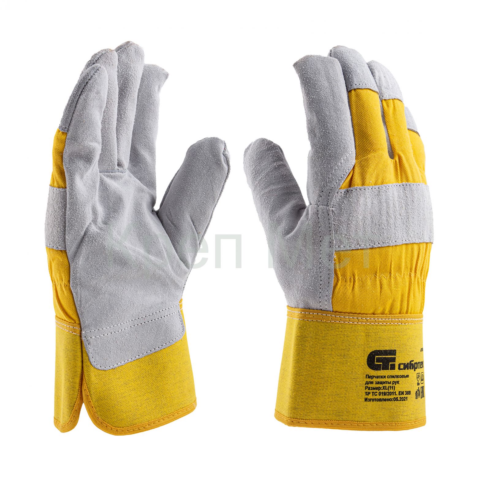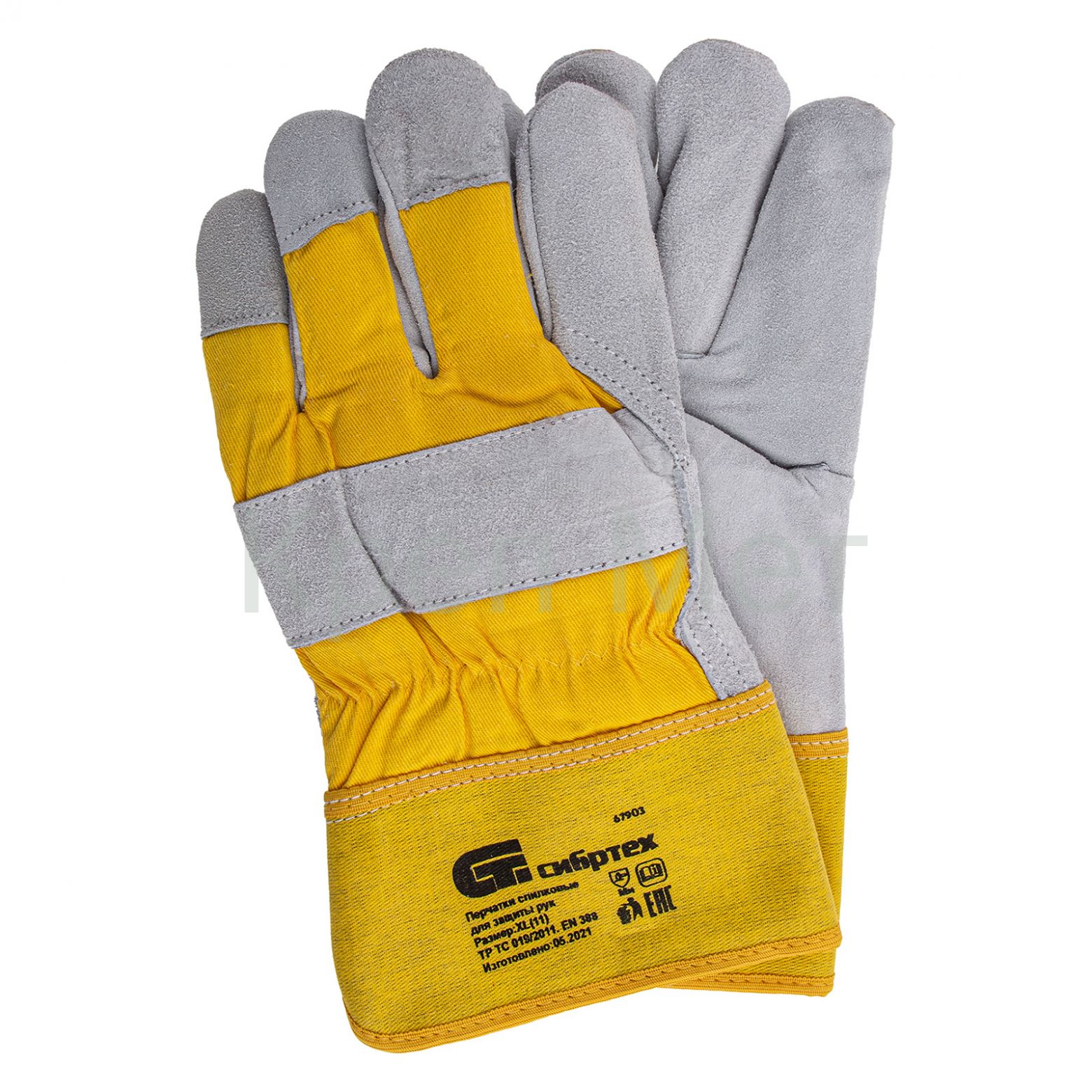 - Перчатки спилковые комбинированные, усиленные, утолщенные, размер XL, Сибртех