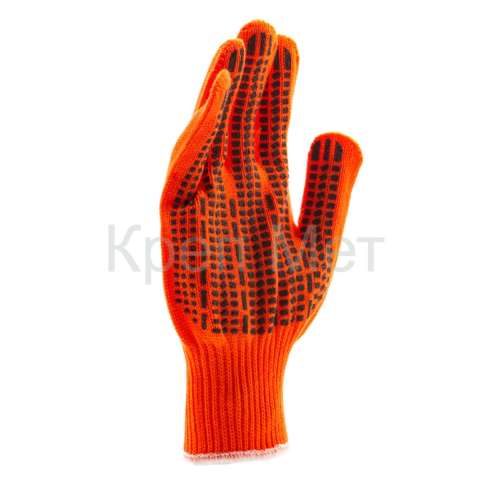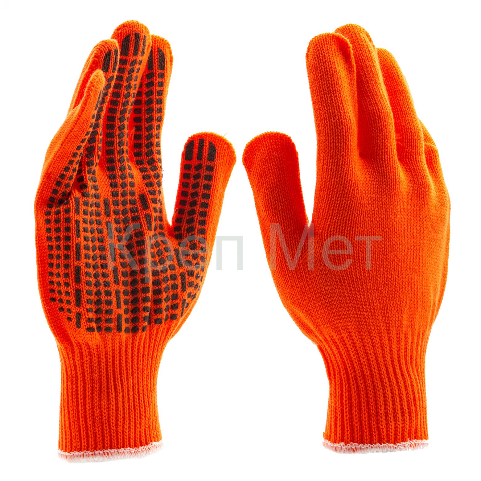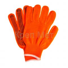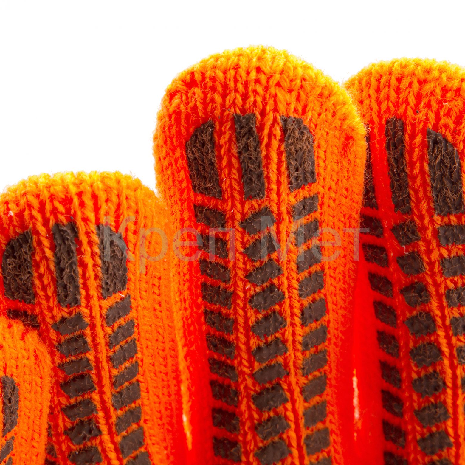 - Перчатки трикотажные, акрил, ПВХ гель, "Протектор", оранжевый, оверлок Сибртех