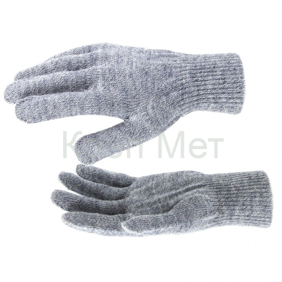 - Перчатки трикотажные, акрил, серое мулине, двойная манжета Сибртех