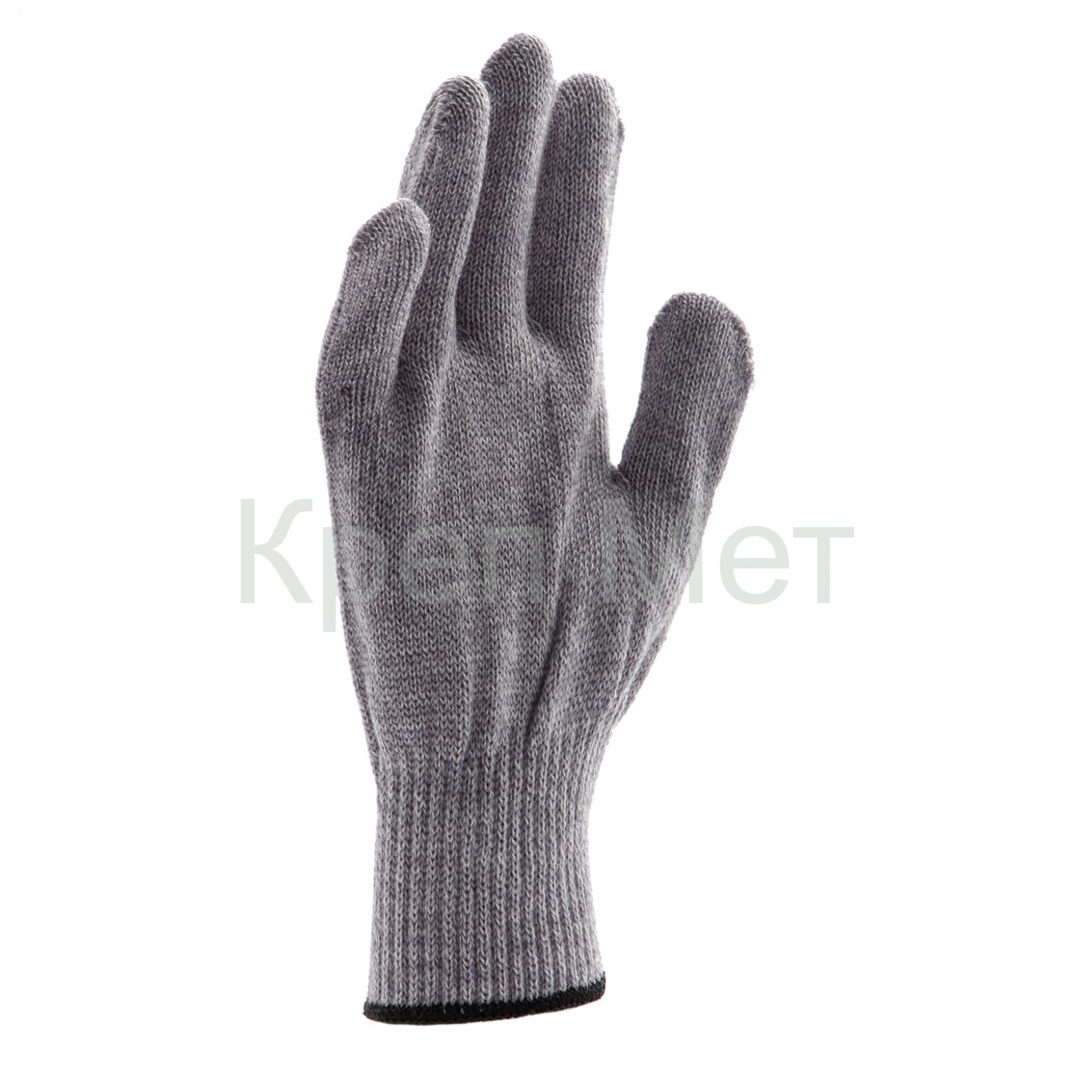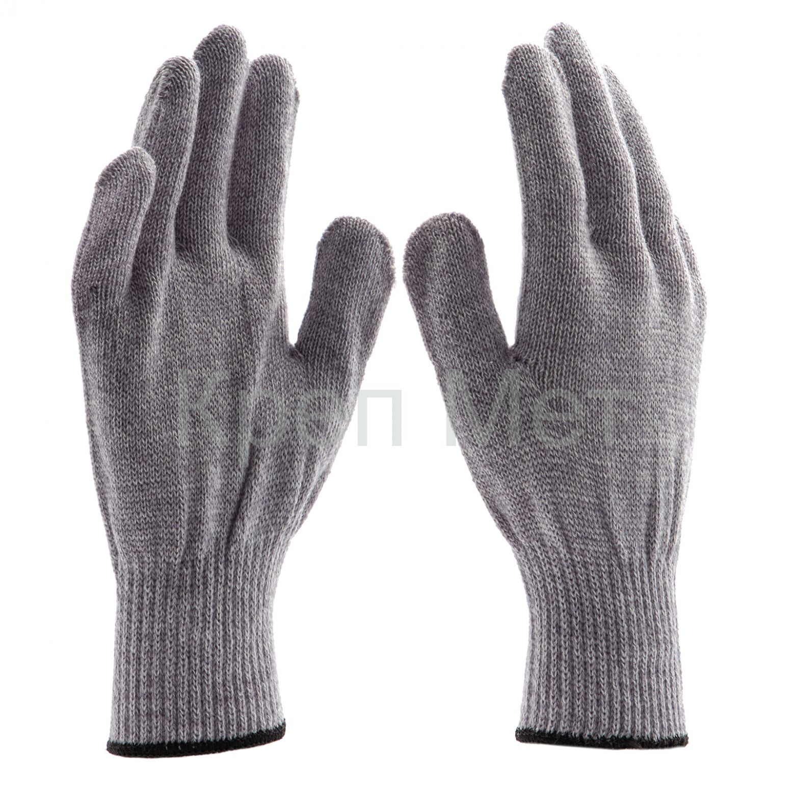 - Перчатки трикотажные, акрил, серое мулине, оверлок Сибртех