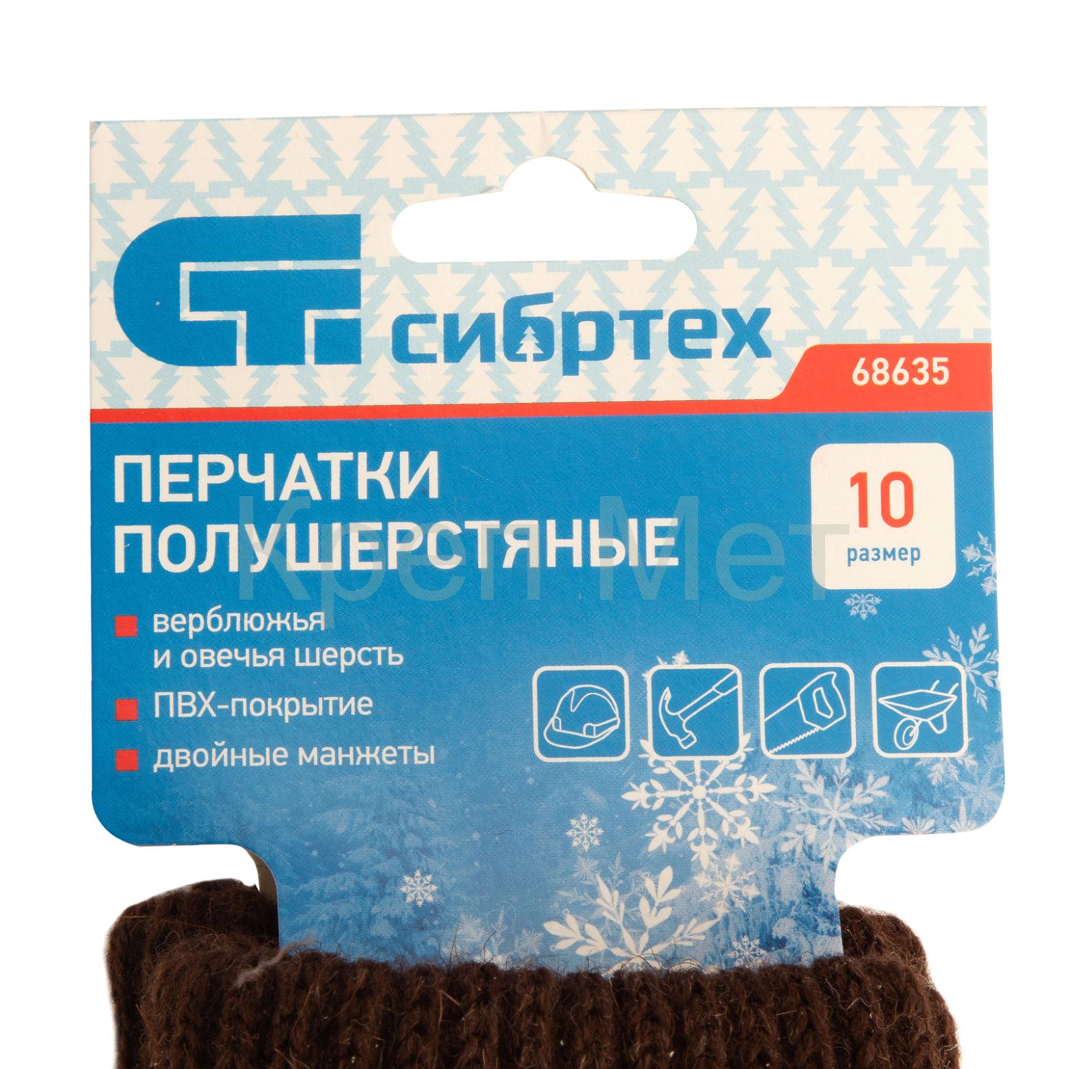- Перчатки трикотажные, двойные, верблюжья и овечья шерсть, ПВХ покрытие, Сибртех