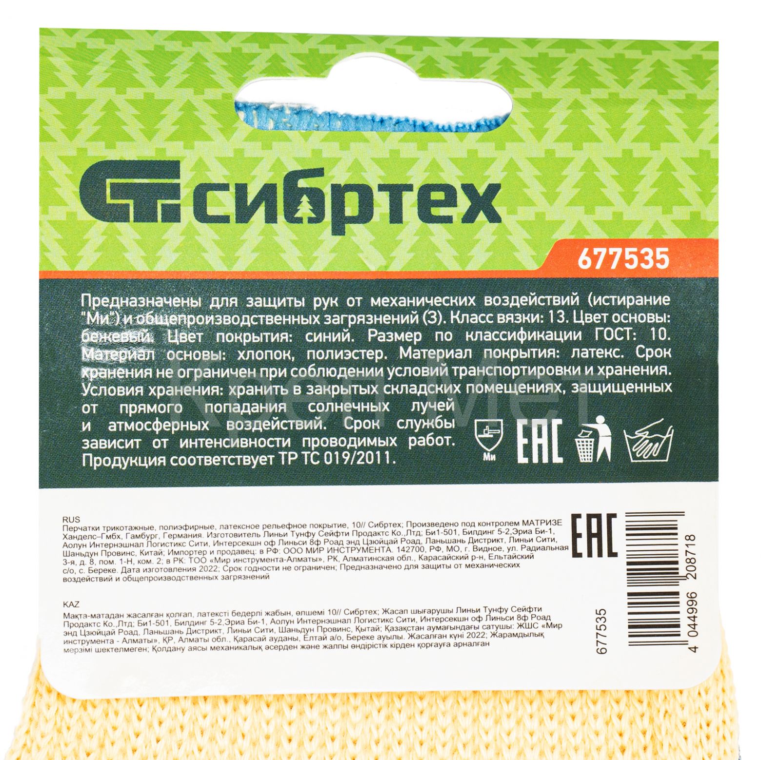 - Перчатки трикотажные, полиэфирные, латексное рельефное покрытие, 10 Сибртех